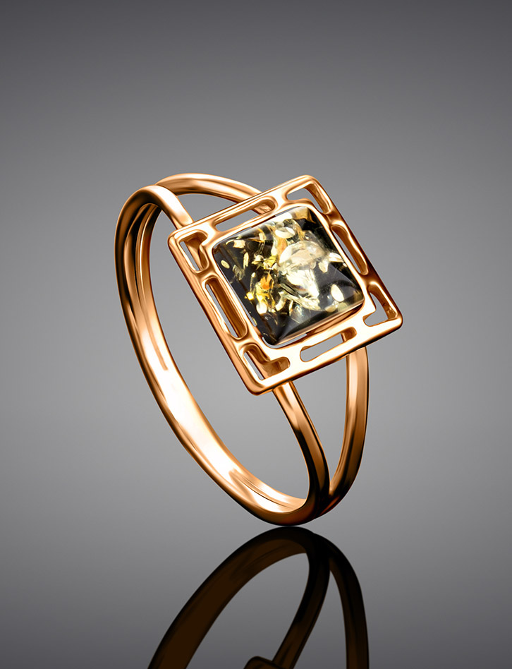 Лёгкое тонкое кольцо из позолоченного серебра и натурального янтаря зелёного цвета создано для того, чтобы добавить в ваш облик лёгкого тонкого шарма. Идеальное повседневное украшение для дополнения любого вашего образа._x000D_