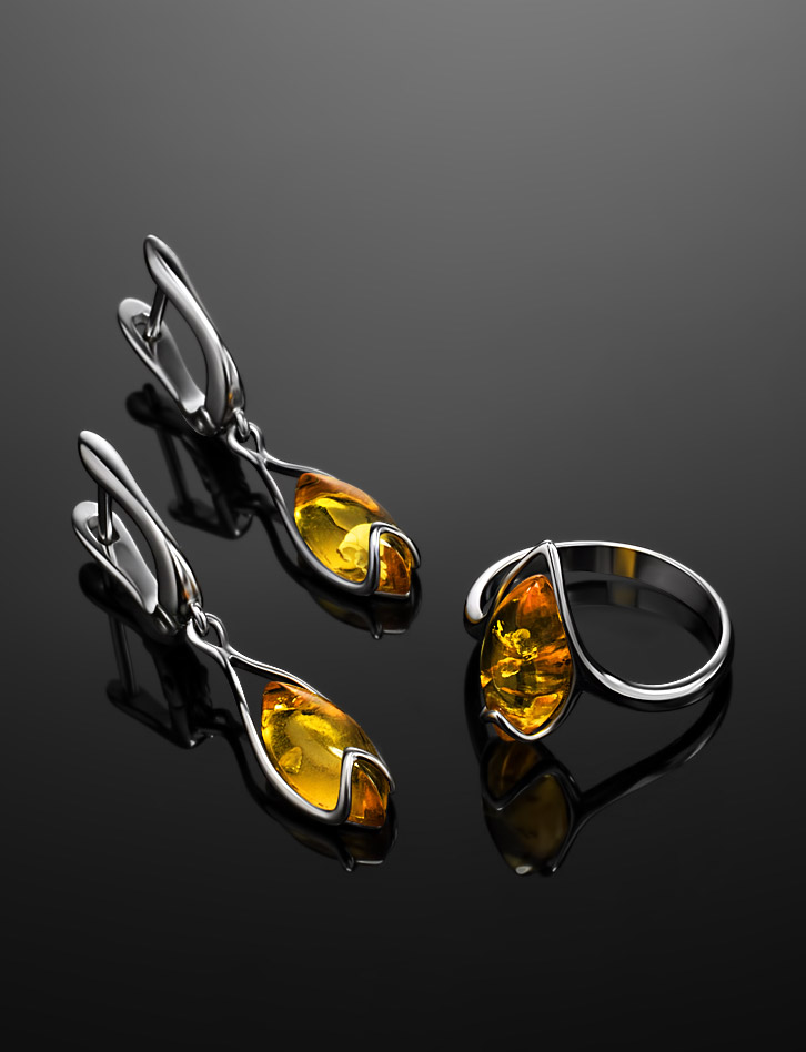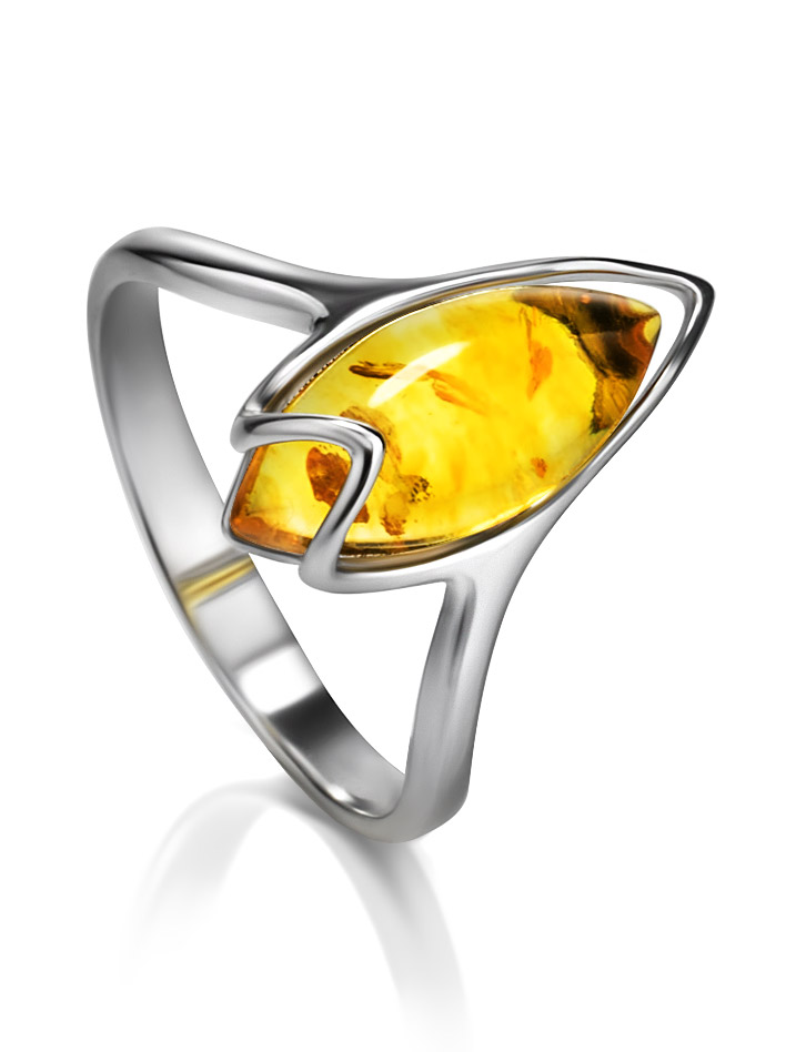 Лёгкое изящное кольцо с лимонным янтарём «Подснежник»