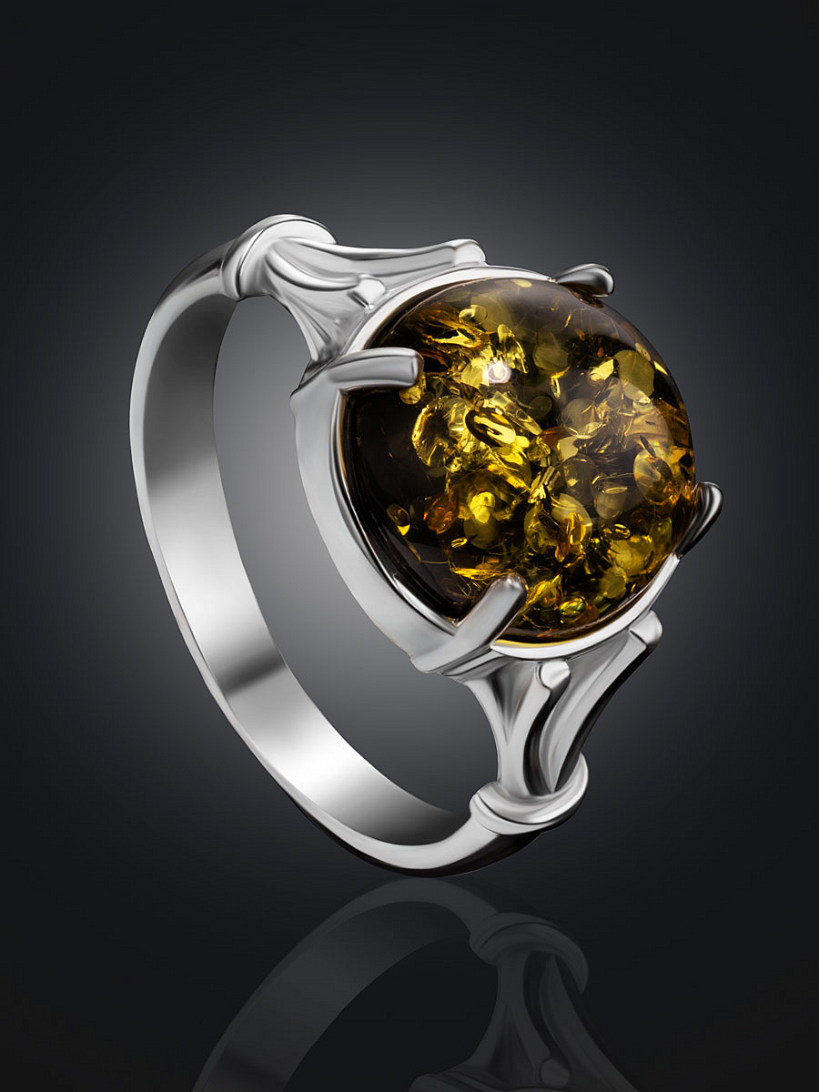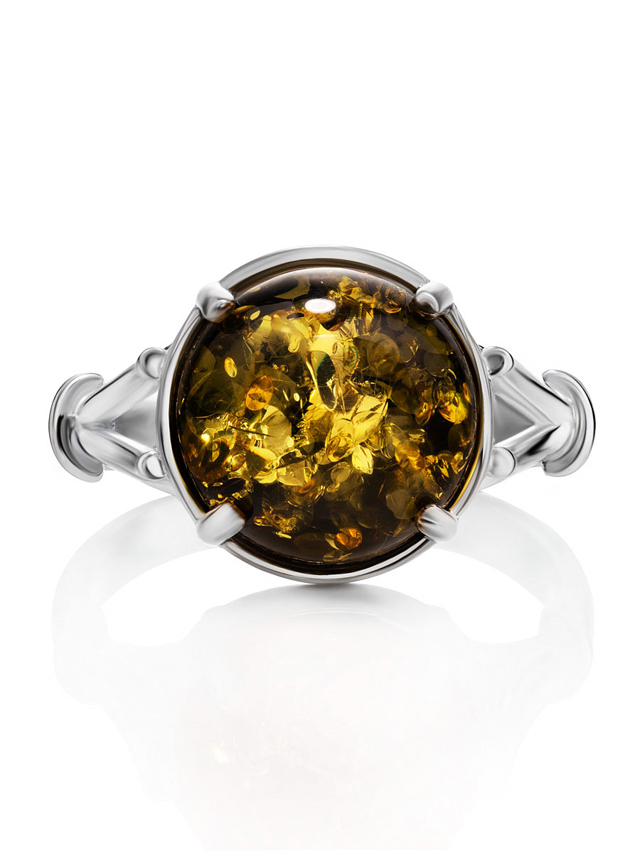 Легкое кольцо из натурального зеленого янтаря «Шанхай»