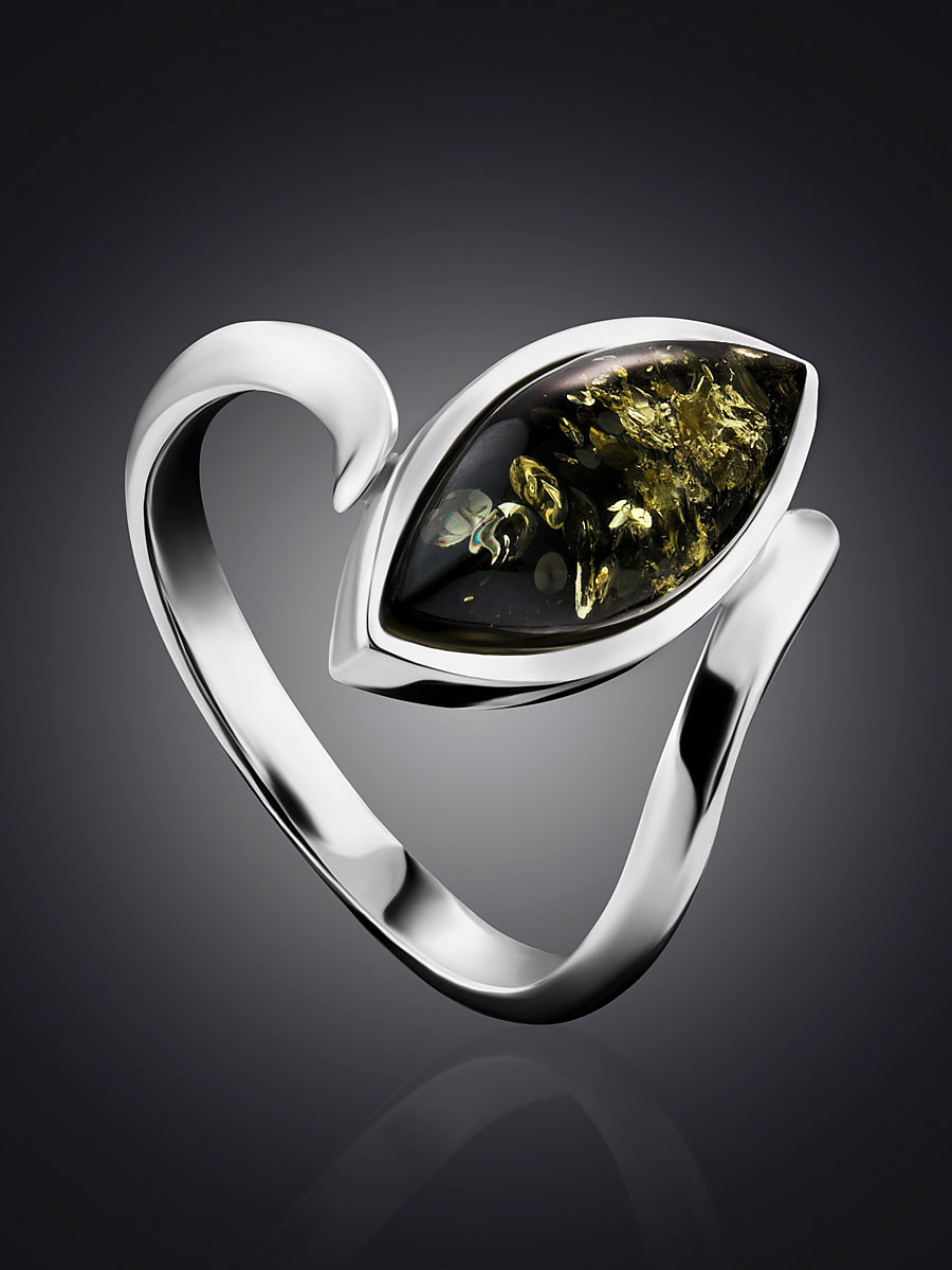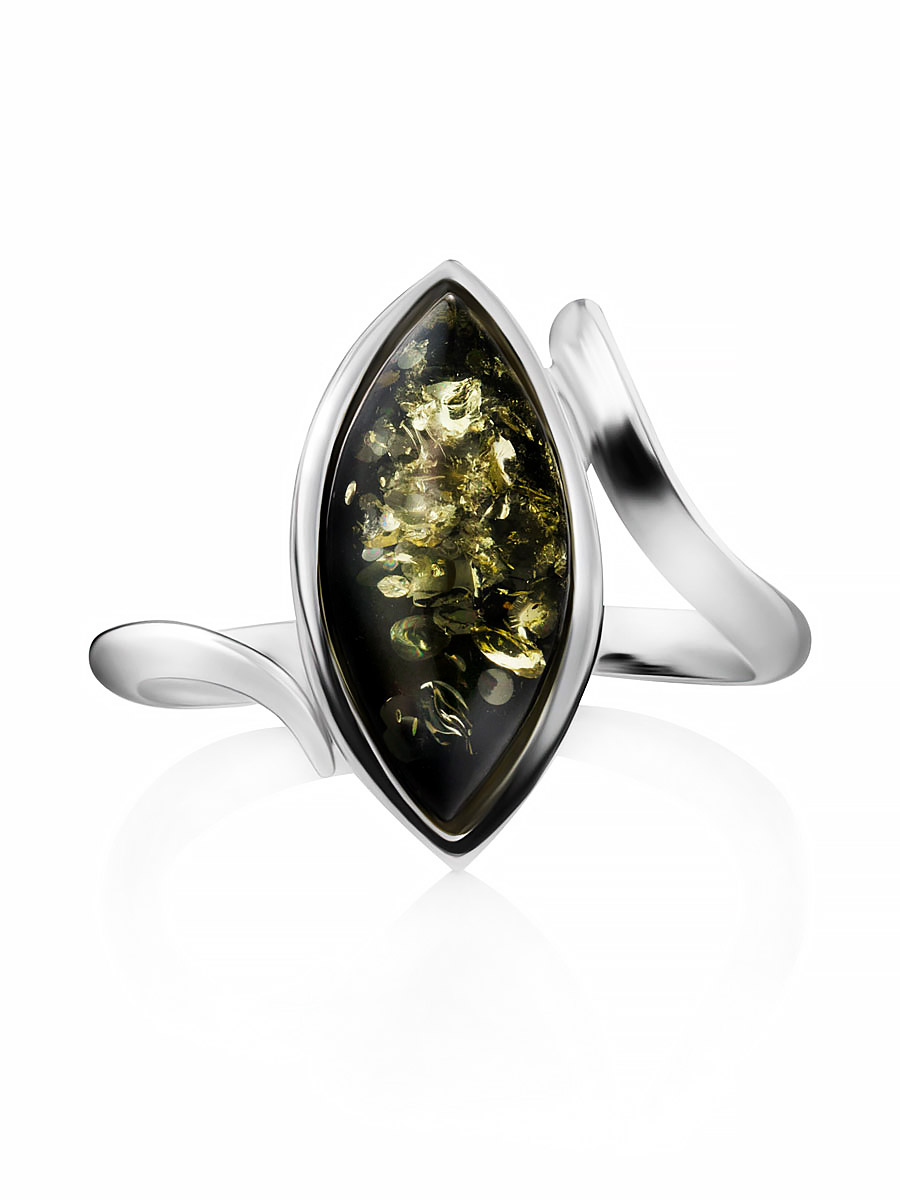 Лёгкое кольцо с искрящимся зелёным янтарем «Адажио»