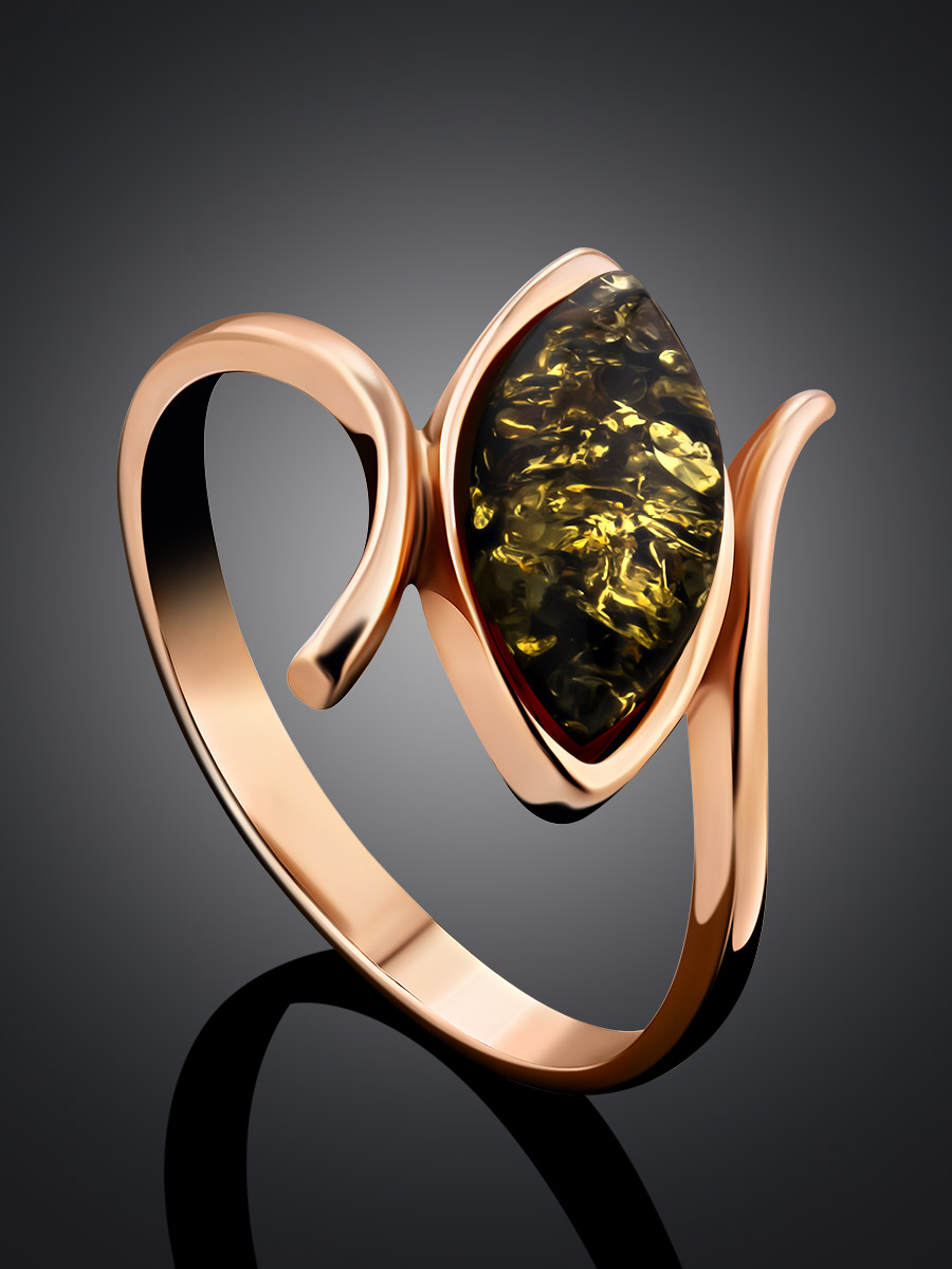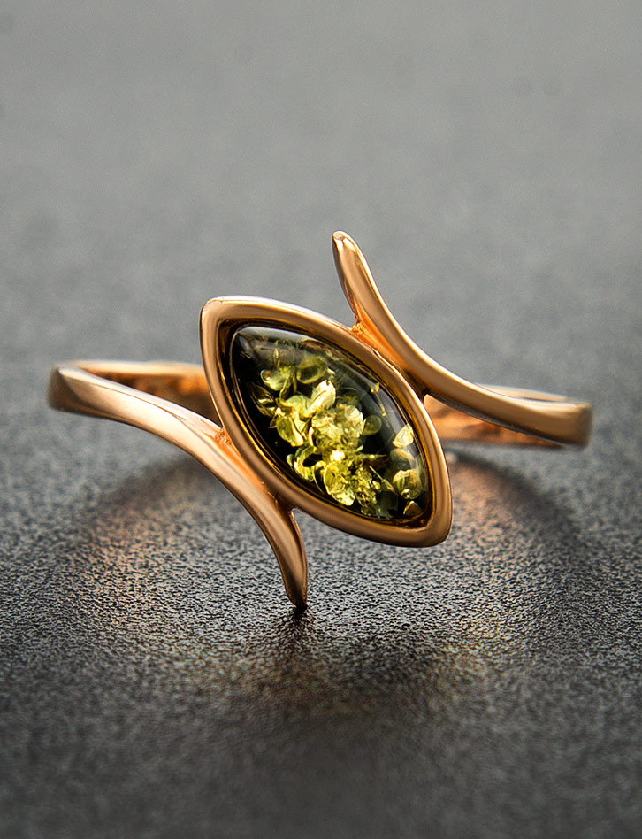 Лёгкое кольцо с натуральным зелёным янтарём «Адажио»