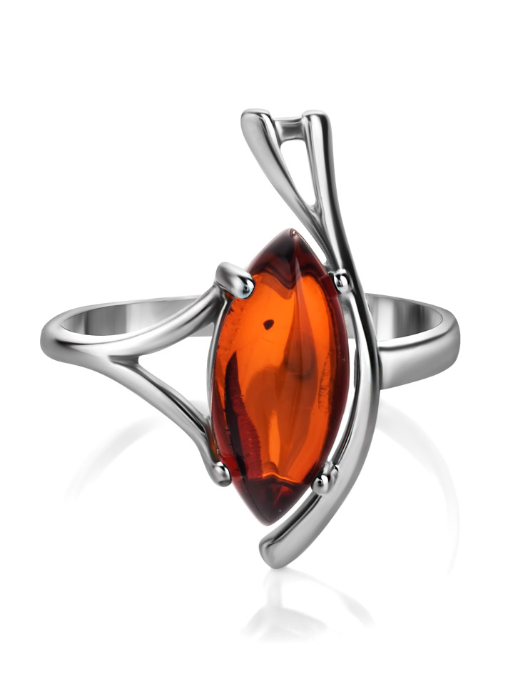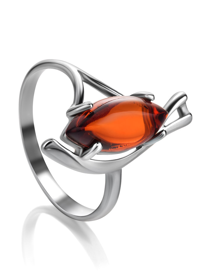 Легкое кольцо со вставкой из натурального коньячного янтаря «Ирис»