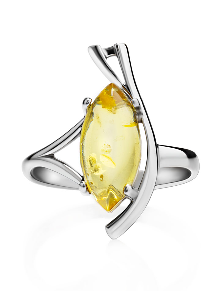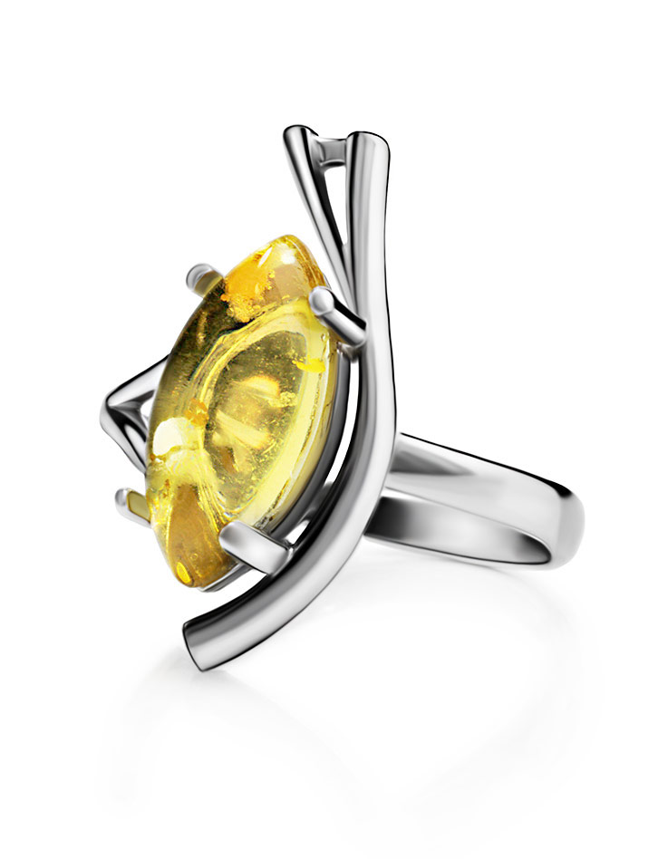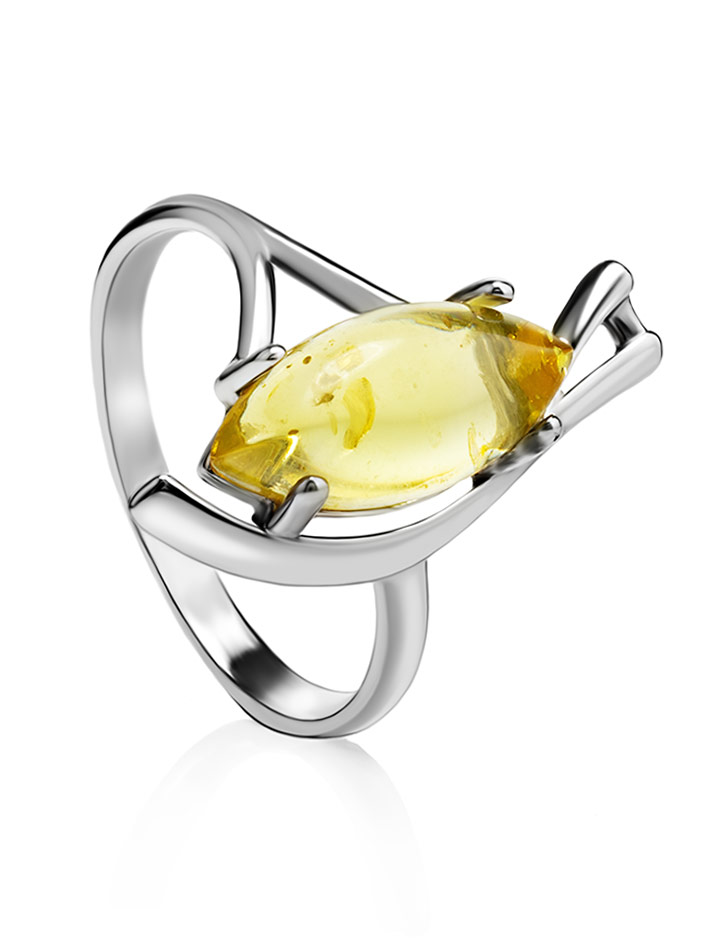 Легкое кольцо со вставкой из натурального золотисто-лимонного янтаря «Ирис»