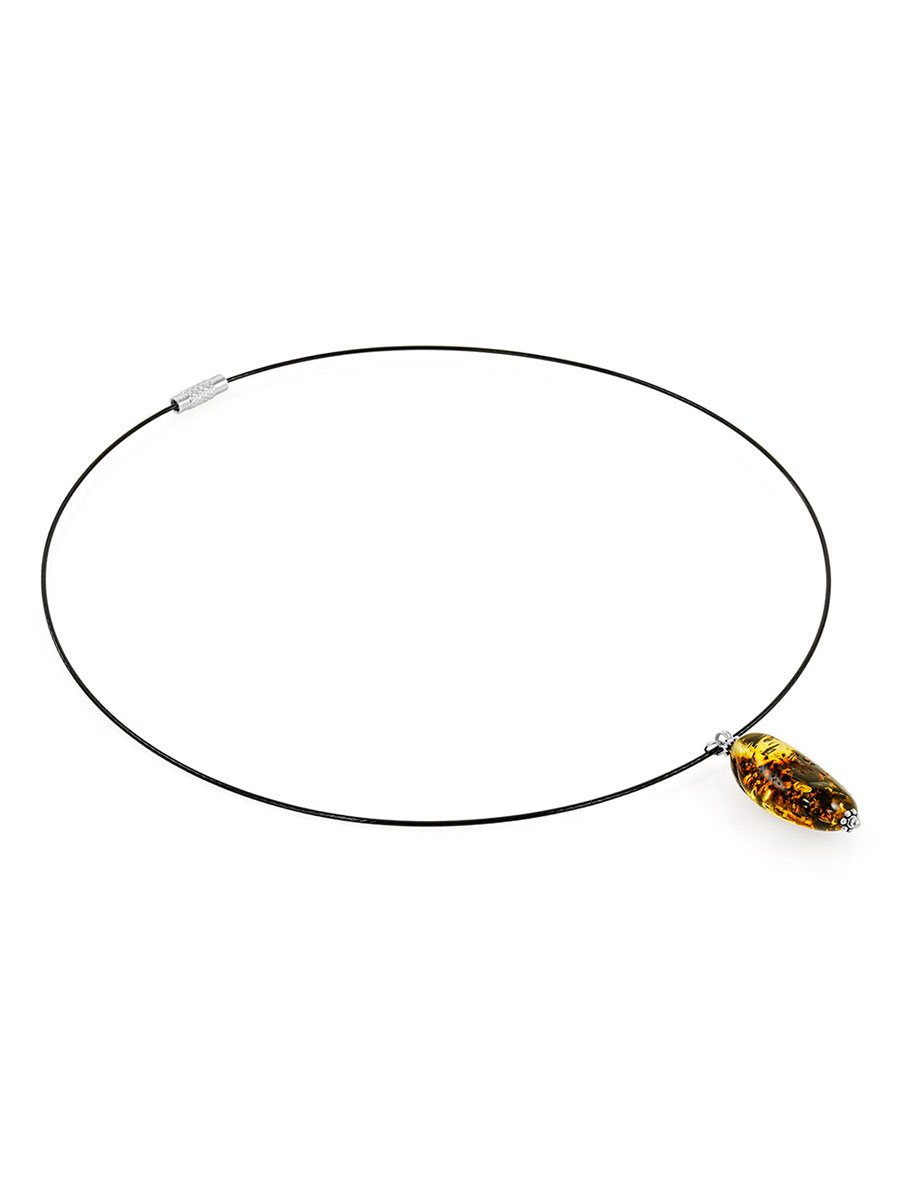 Размеры камня (мм): 24х13х9 Вес и..показатьзделия (г): 4.7 Размер / длина (см): 46 Цвет: лимонный / коньячный / зеленый Материалы: Натуральный янтарьОригинальное колье на струне с цельным балтийским янтарём зеленоватого оттенка «Сафари»: 406109025_x000D_