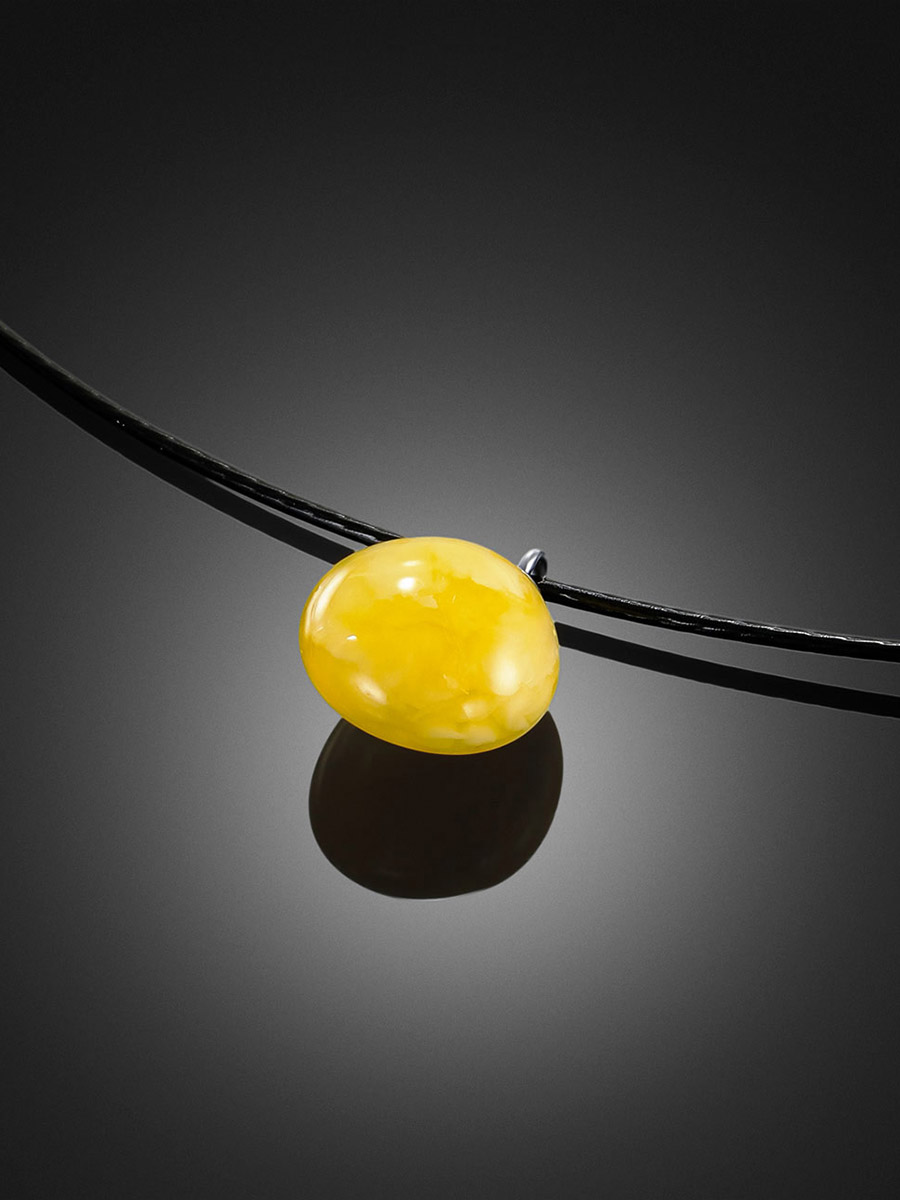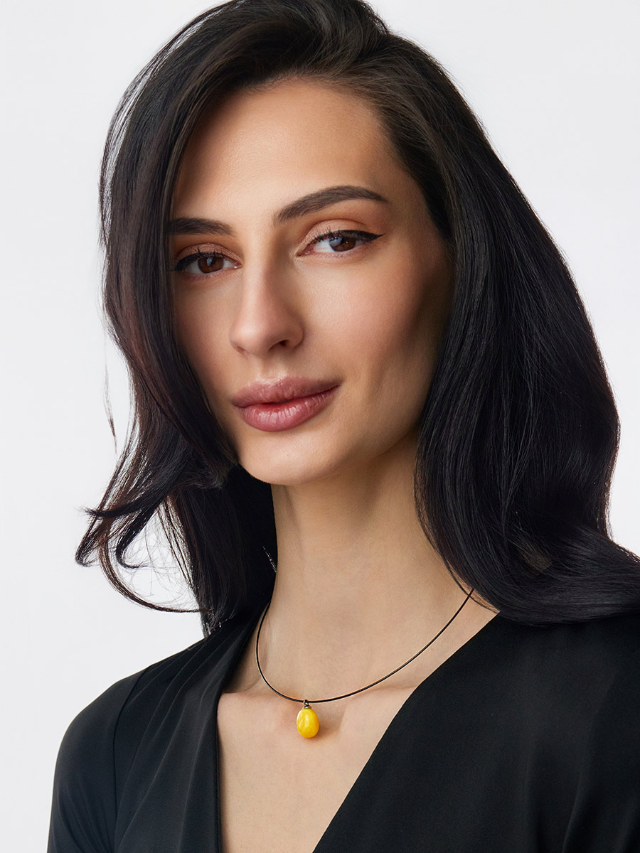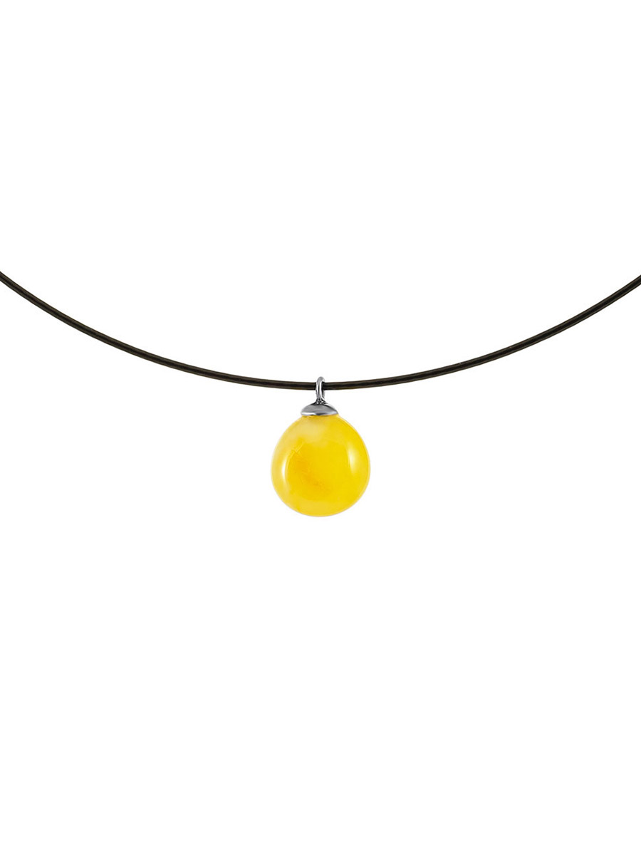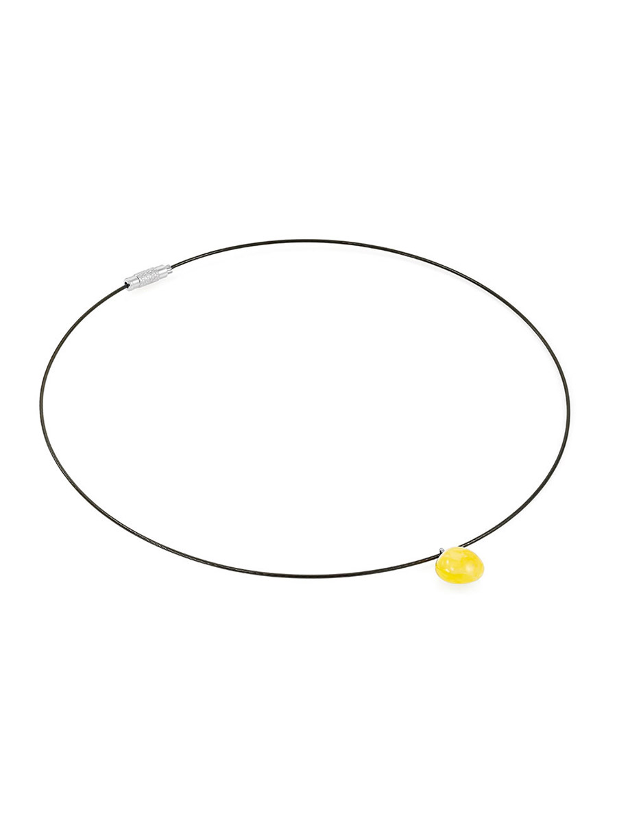 Лёгкое колье-обруч с подвеской из янтаря медового цвета «Росинка»