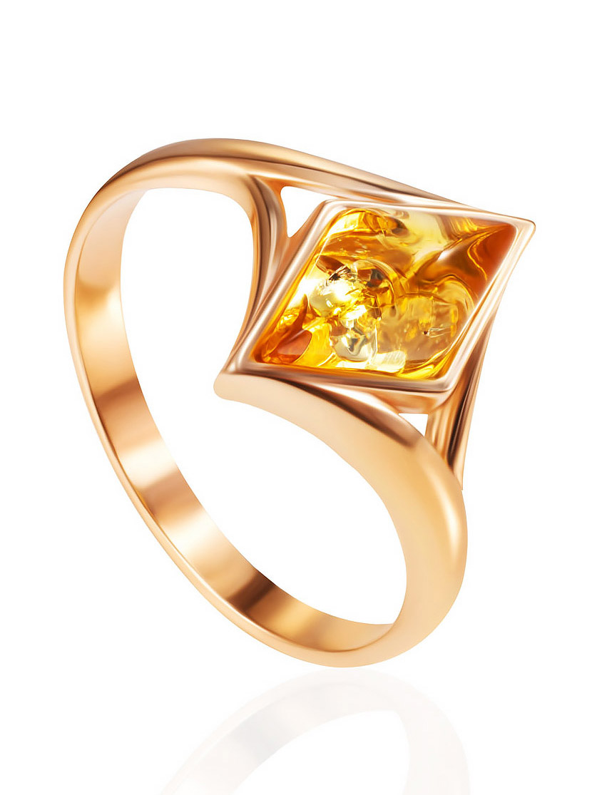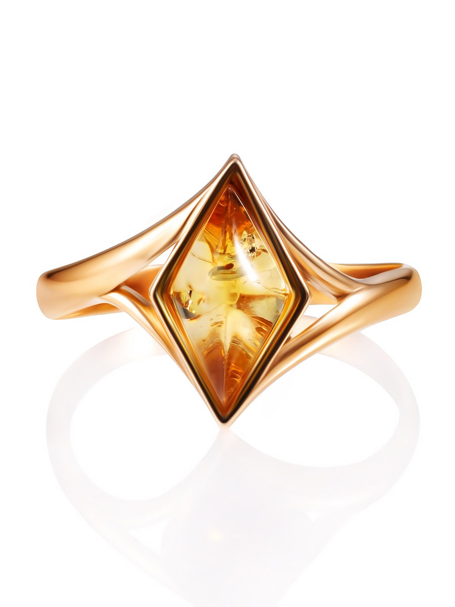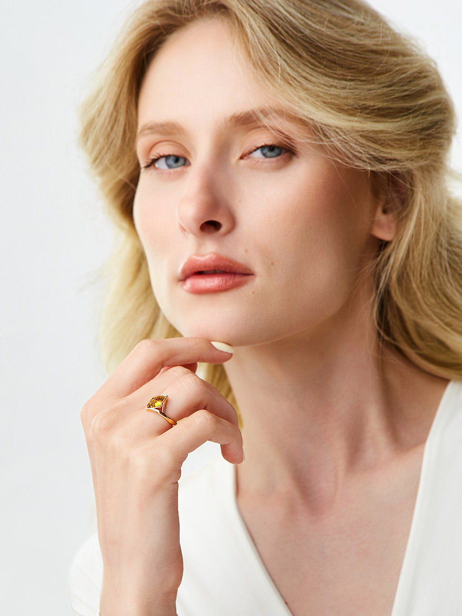 Лёгкое позолоченное кольцо с натуральным лимонным янтарём «Коломбина»