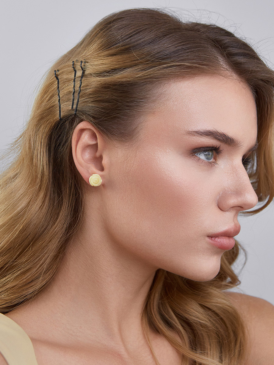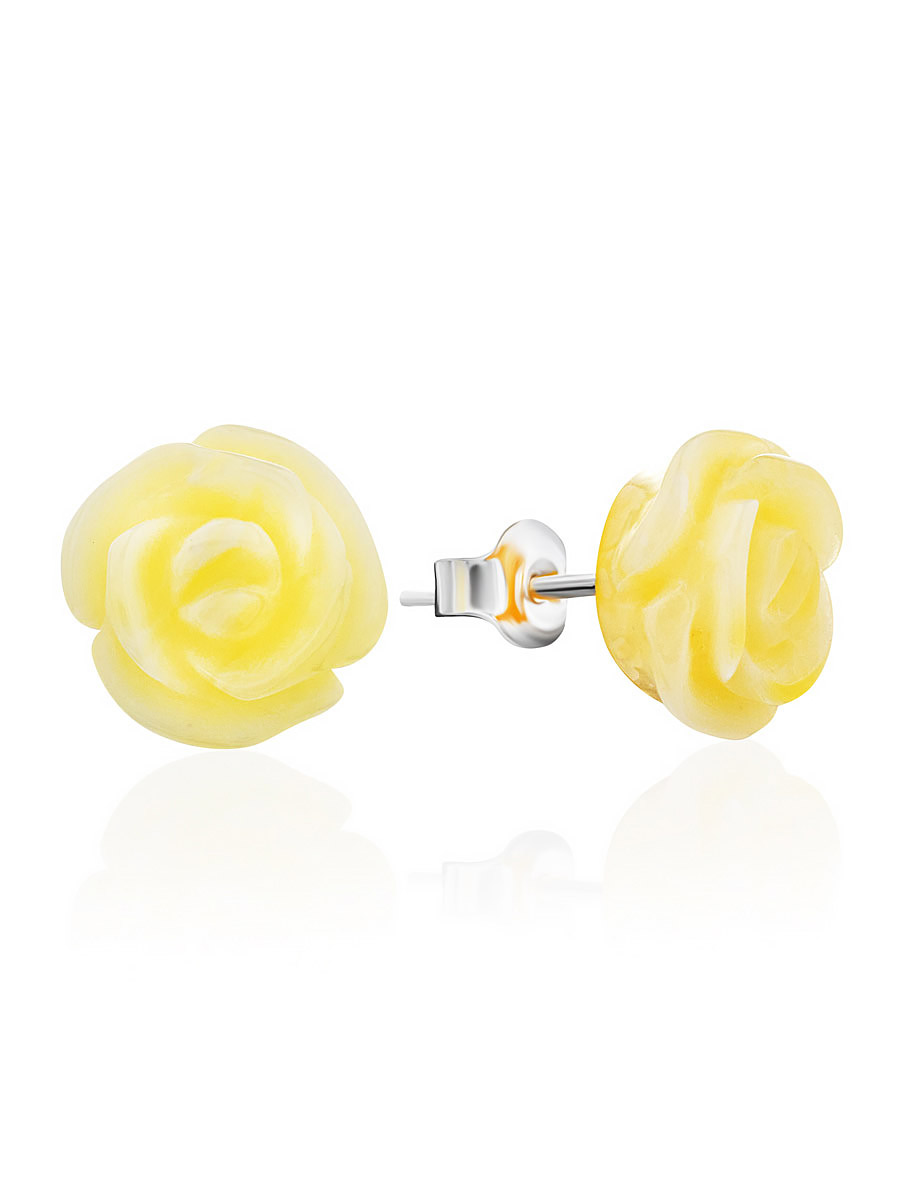 Маленькие изящные серьги-гвоздики из натурального медового янтаря «Розочка»