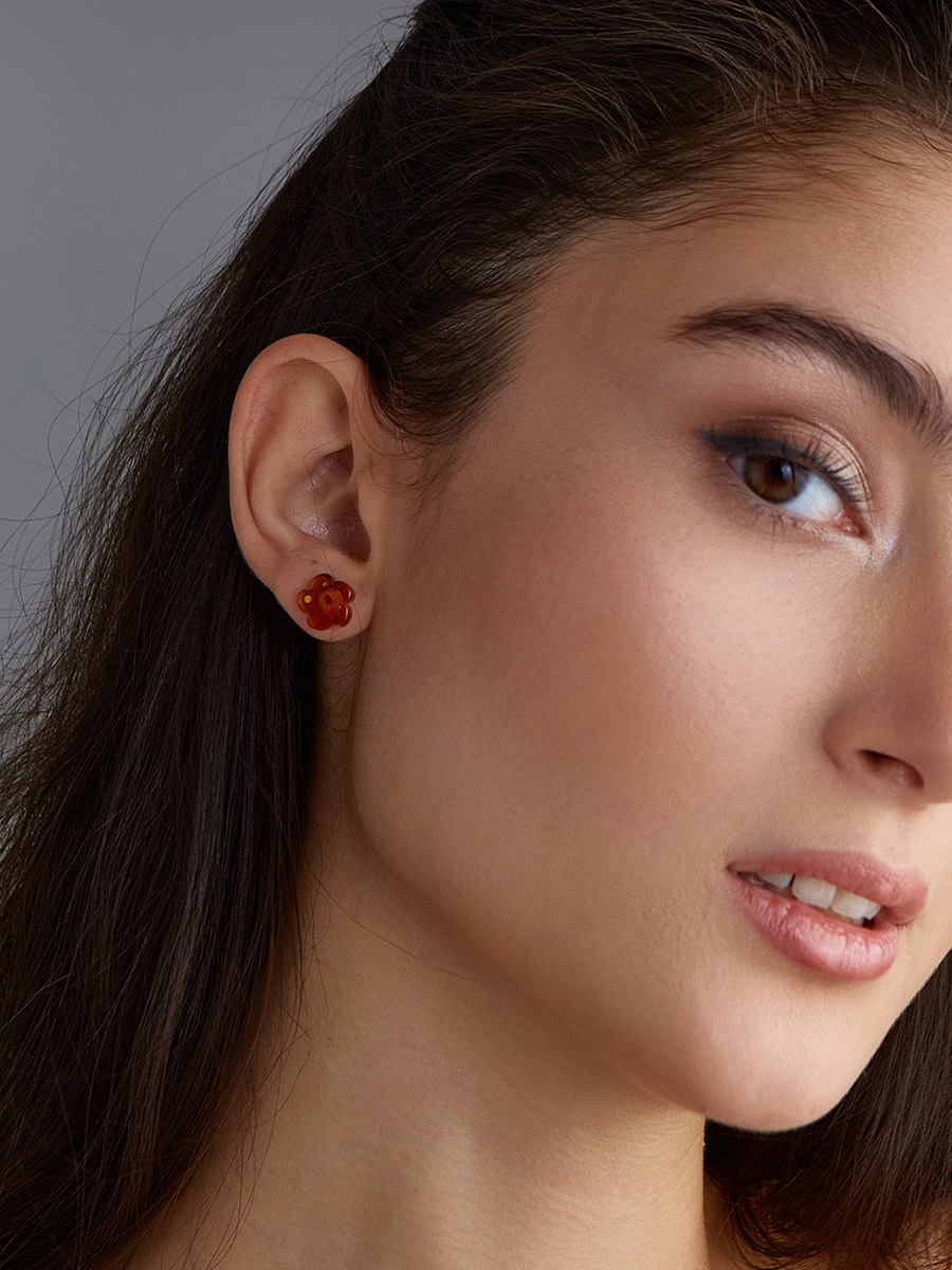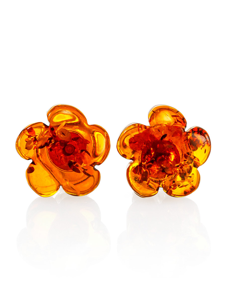 Маленькие янтарные серьги на замочках-гвоздиках «Цветочек»