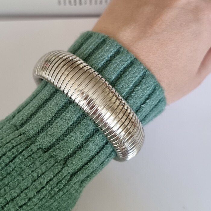 Металлический жесткий браслет на руку, цвет: серебристый, арт.001.186