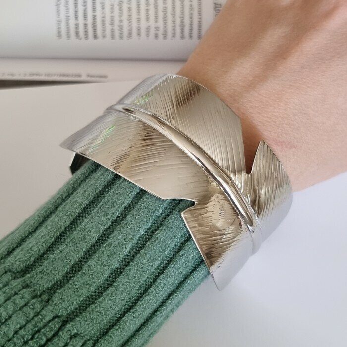 Металлический жесткий браслет на руку, цвет: серебристый, арт.001.191