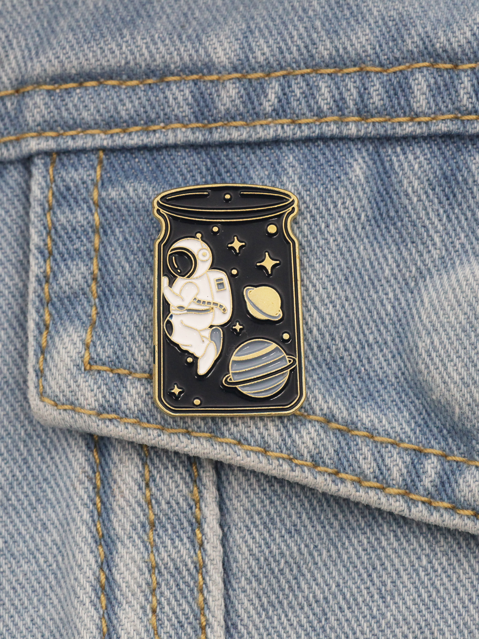 Металлический значок "Астронавт в банке" Ш*В: 1.7*2.8 см