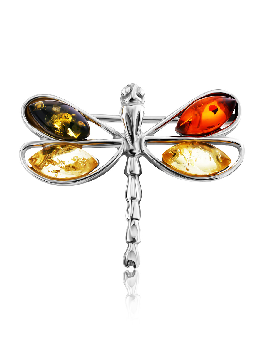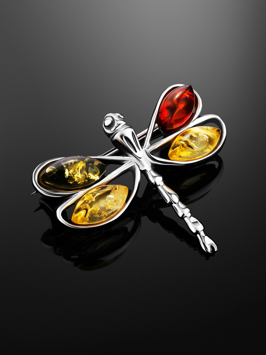 Милая брошь «Стрекоза» из янтаря разных оттенков