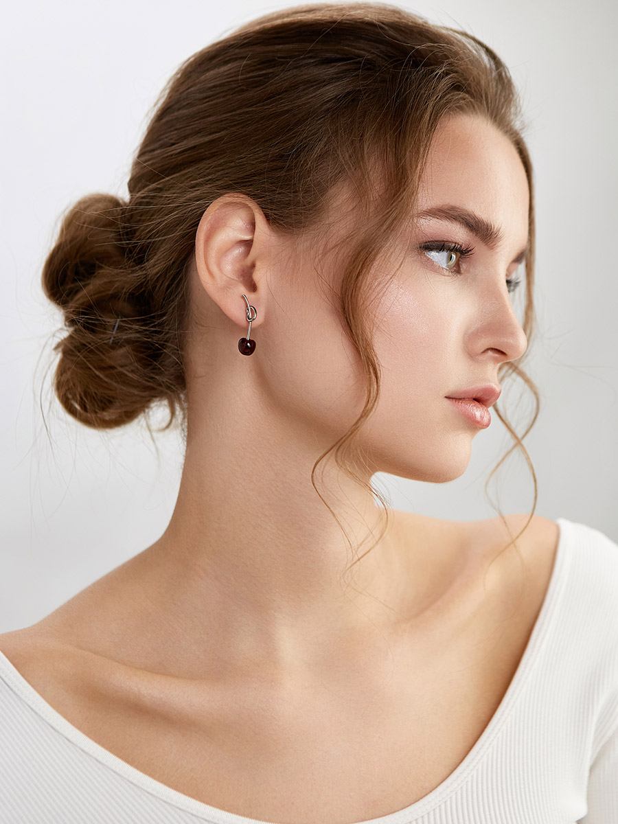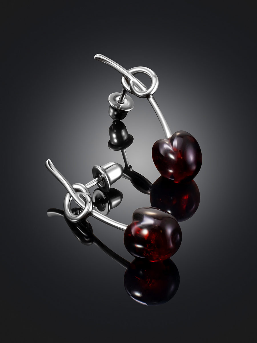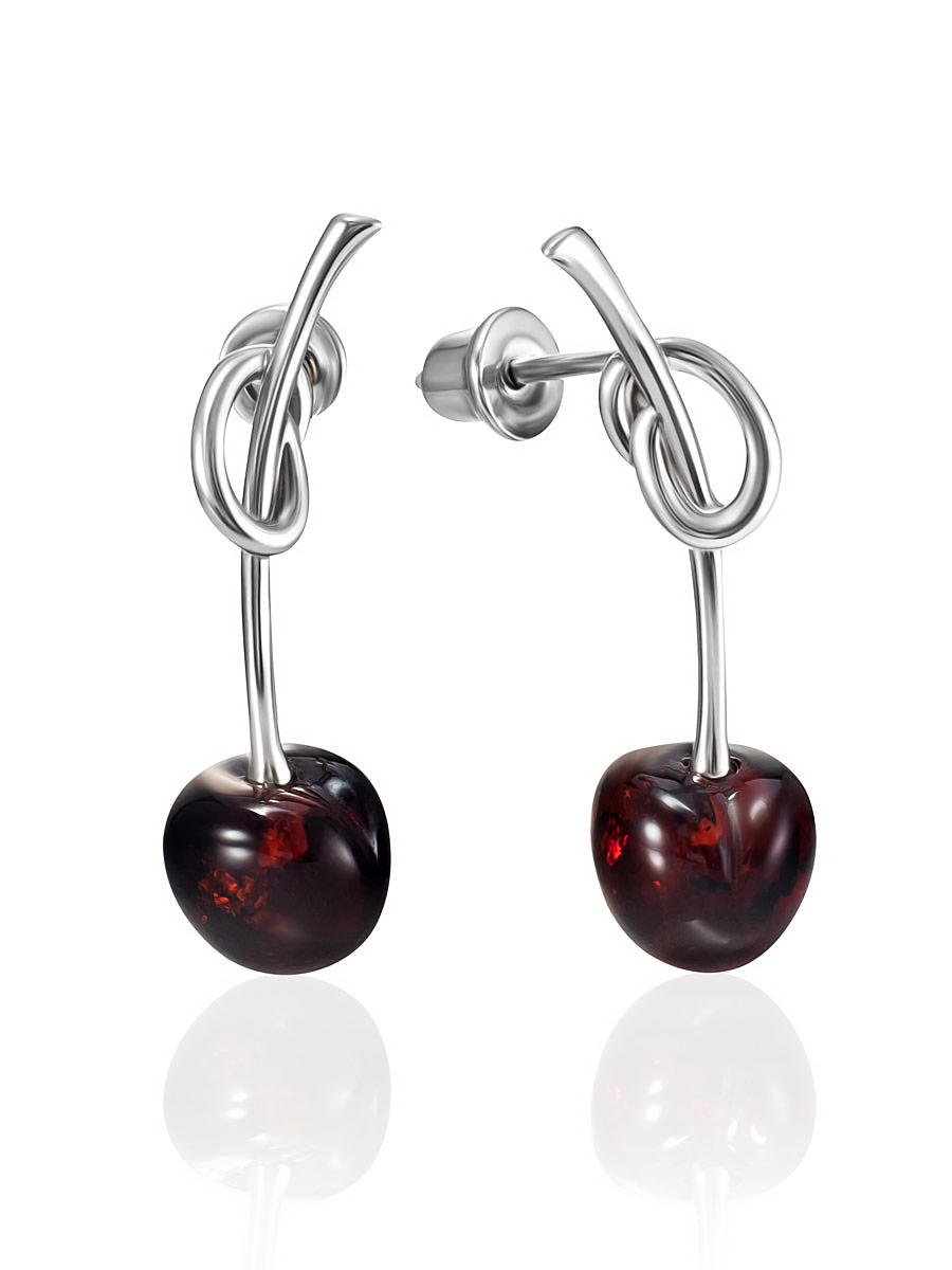 Милые серьги-гвоздики «Вишенка» с натуральным янтарём