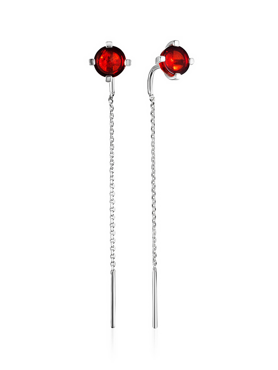 Милые серьги «Принцесса» с янтарём ярко-красного цвета