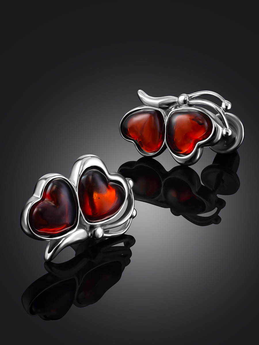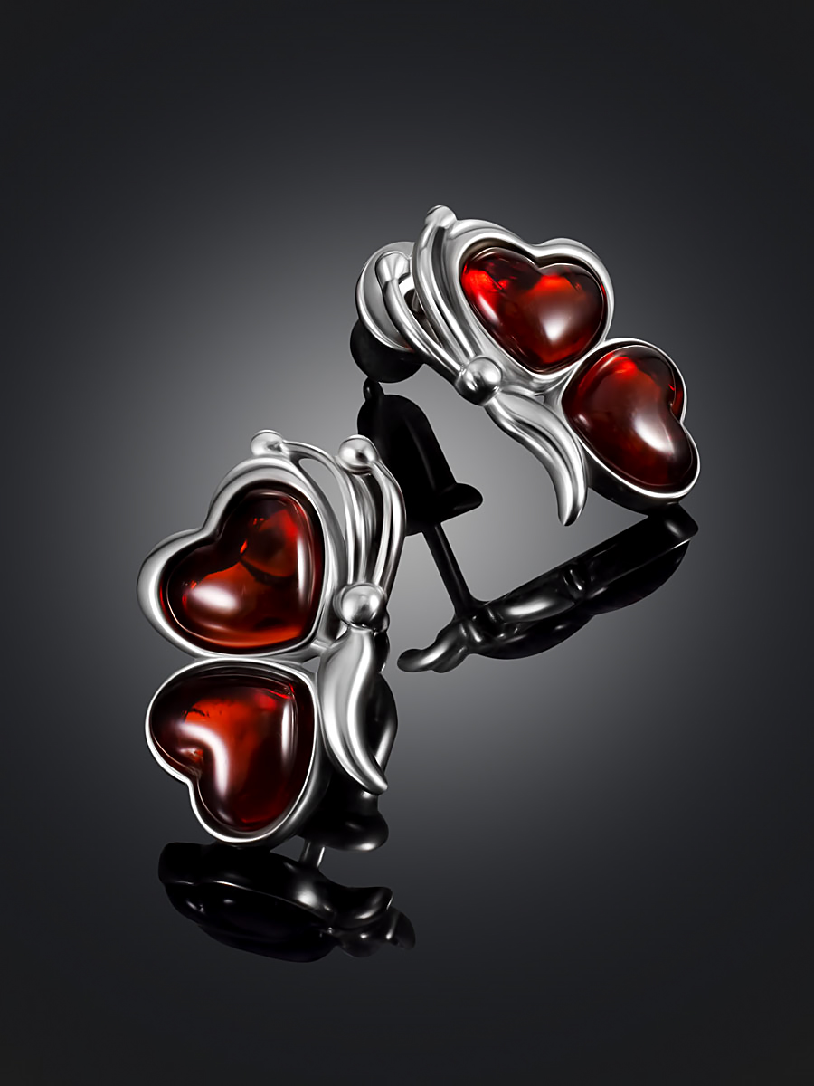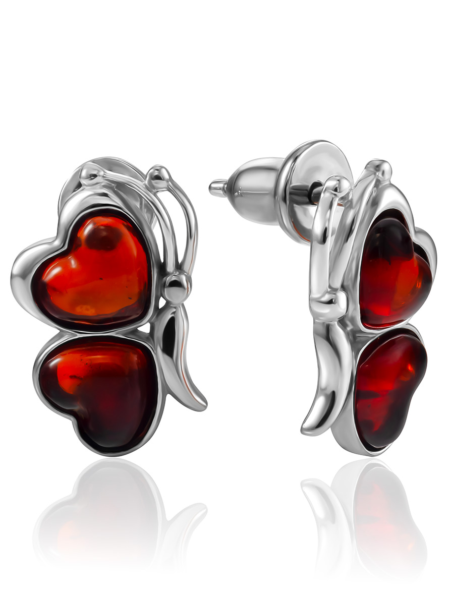 Милые серьги с янтарём вишнёвого оттенка «Апрель»