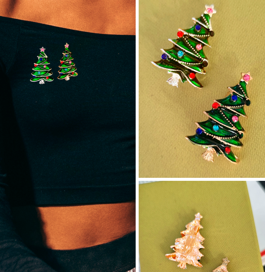 Мини-брошь "Новогодняя ёлка" 2 шт цвет: золотой и серебряный, арт. 748.194