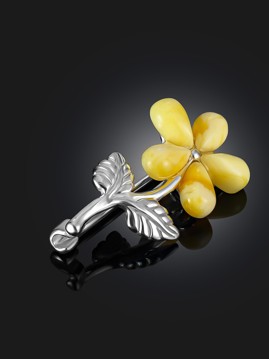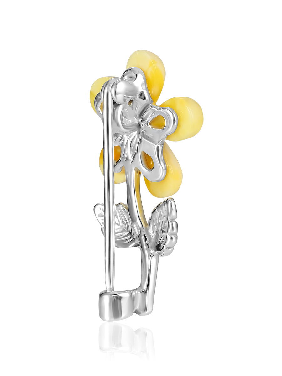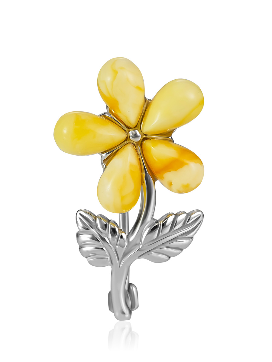 Миниатюрная брошь «Кувшинка» с лепестками из медового янтаря