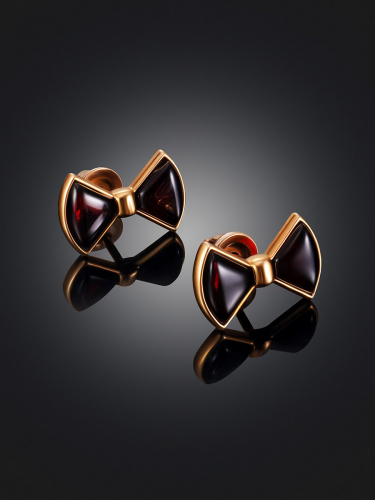 Миниатюрные серьги-гвоздики из зелёного янтаря в золочении «Иоланта»