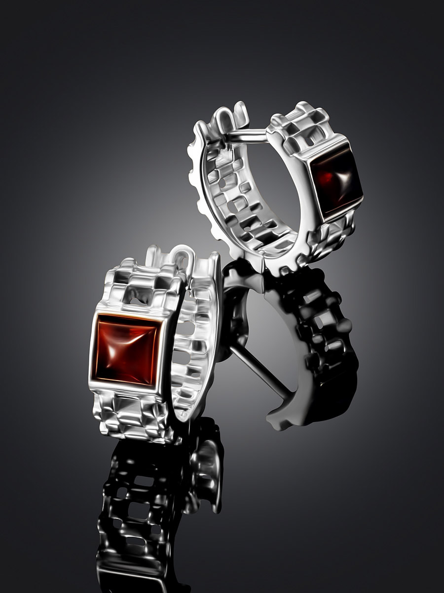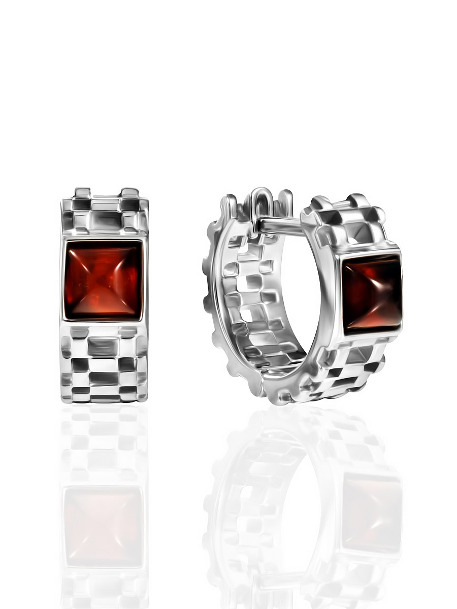Миниатюрные серьги-конго с коньячным янтарём «Турбийон»