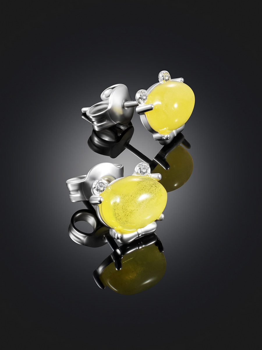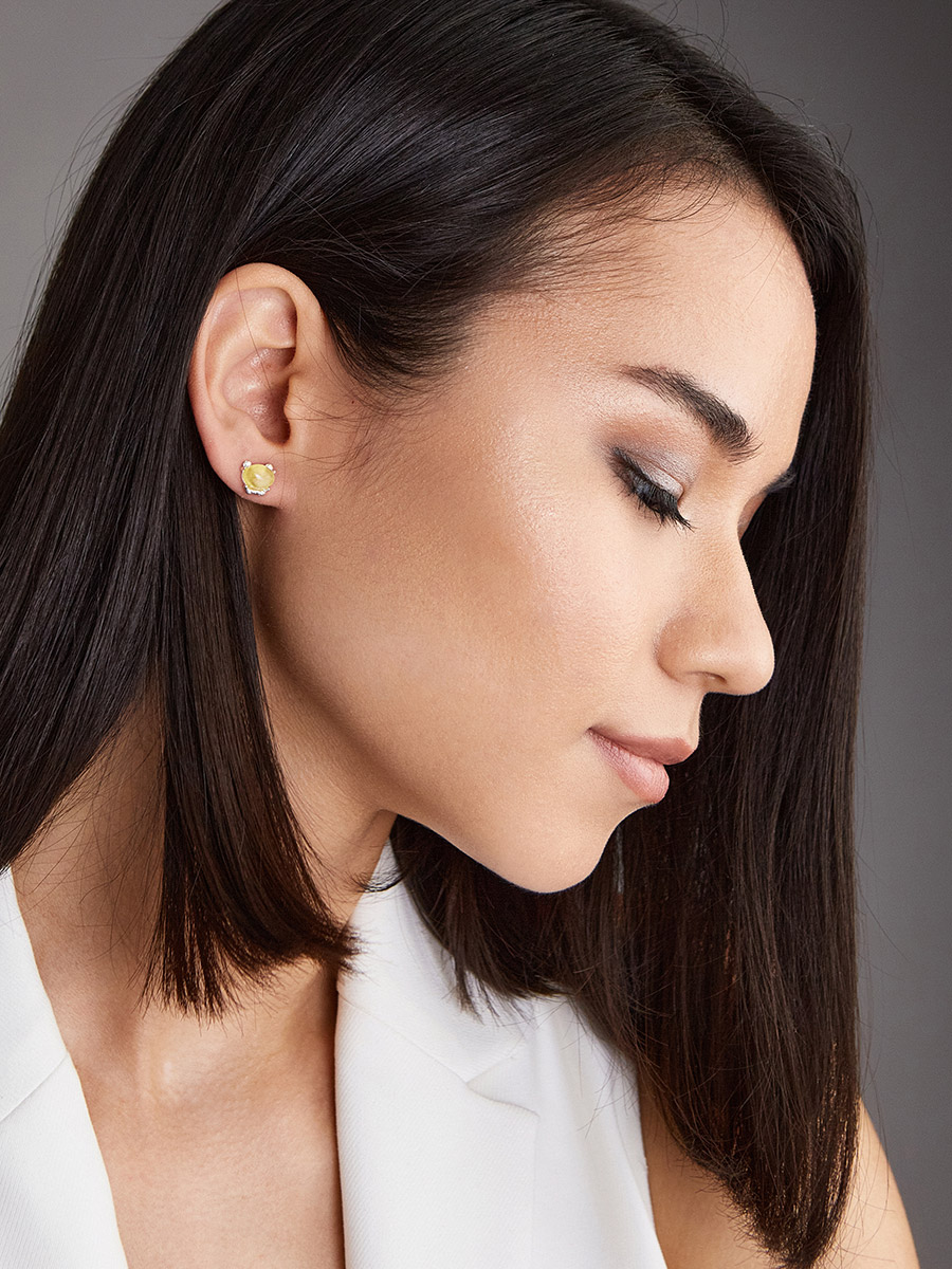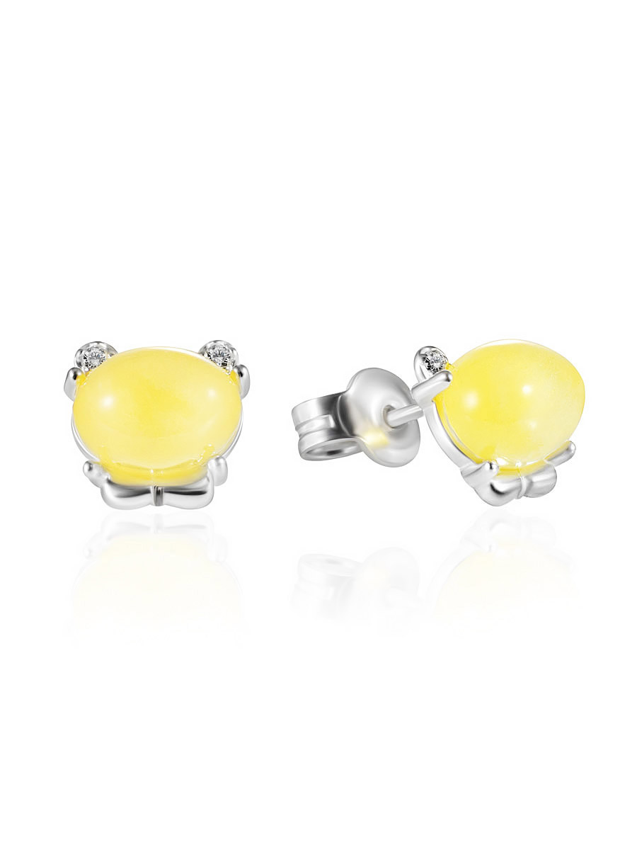 Миниатюрные серьги со светло-медовым янтарём и фианитами «Медвежонок»