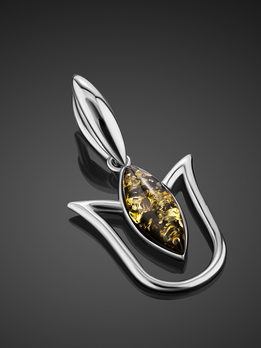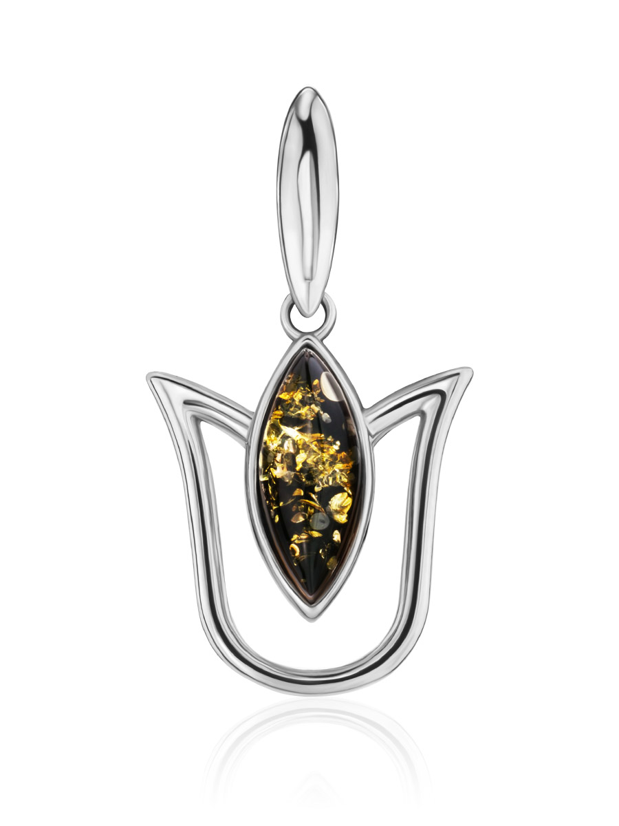Миниатюрный кулон с зелёным янтарём «Тюльпан»