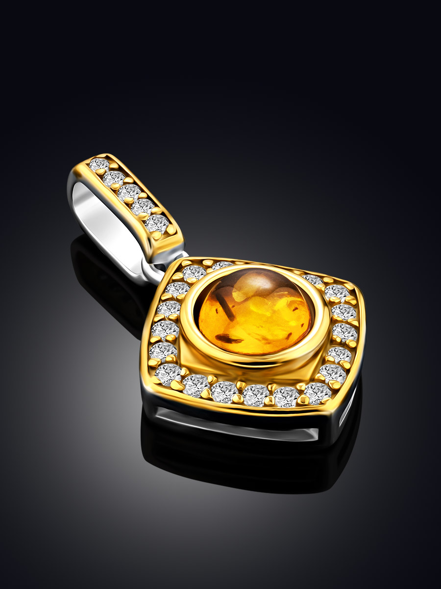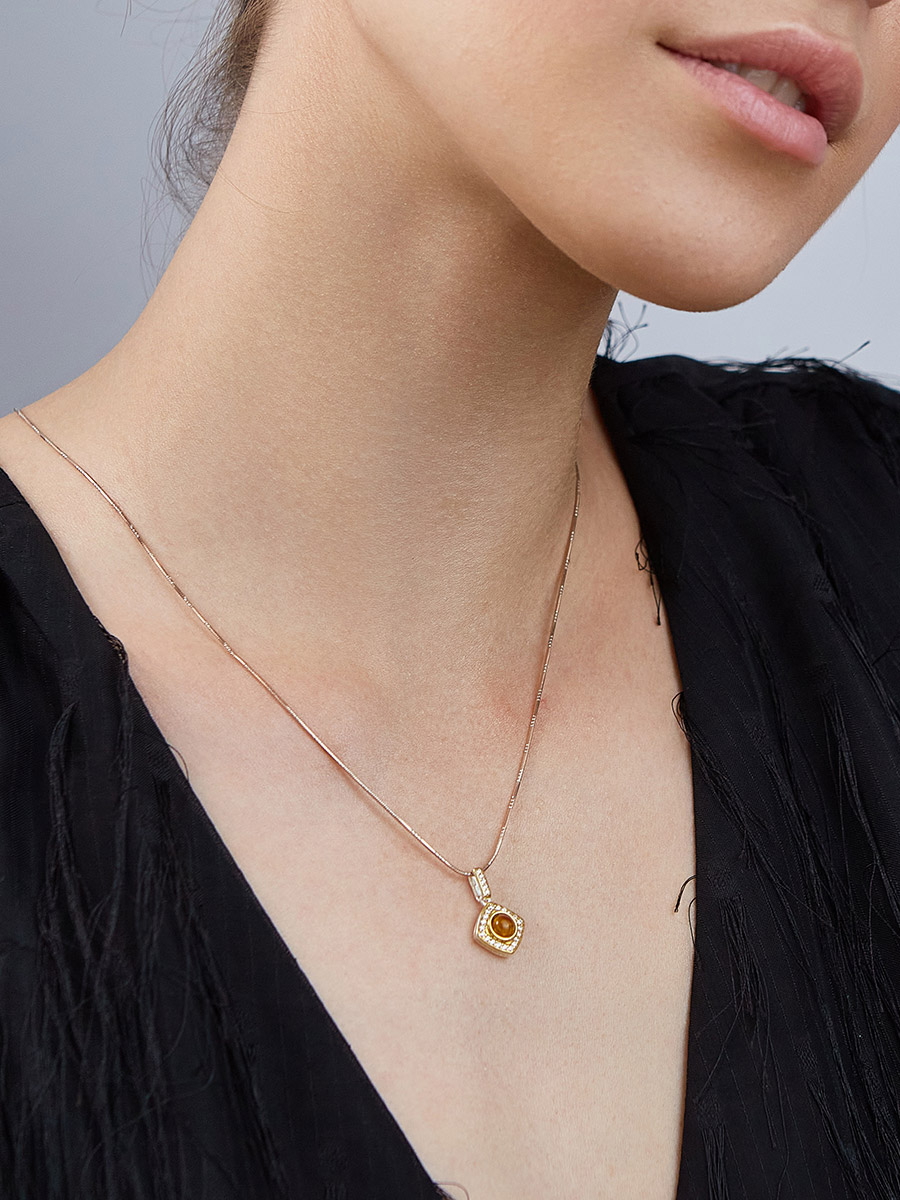 Миниатюрный кулон, украшенный янтарём и кристаллами «Ренессанс»
