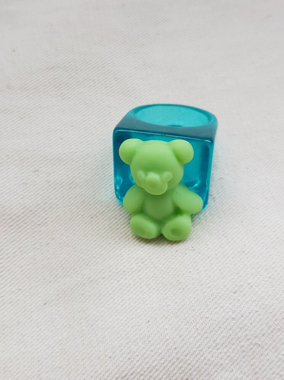 Модное кольцо с мишкой, цвет зеленый, арт.032.192