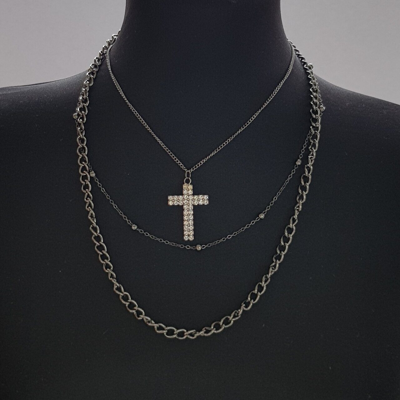Модное колье, цвет тёмно-серый, арт.018.184