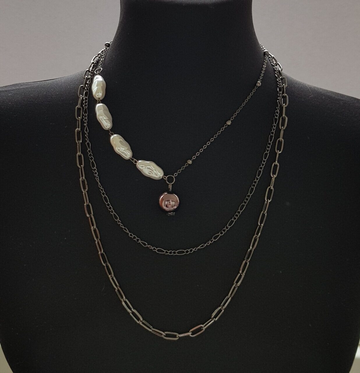 Модное колье, цвет тёмно-серый, арт.018.188