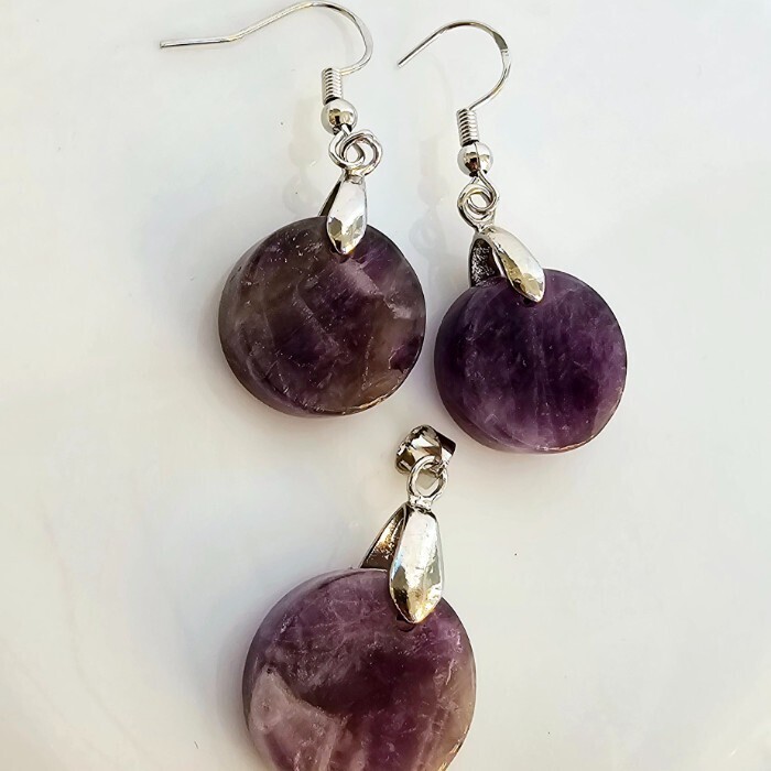 Отзывы и вопросы о товаре «Набор бижутерии серьги и кулон с цепочкой с натуральным камнем Аметист, 10120, Уценка, арт.08.2209»