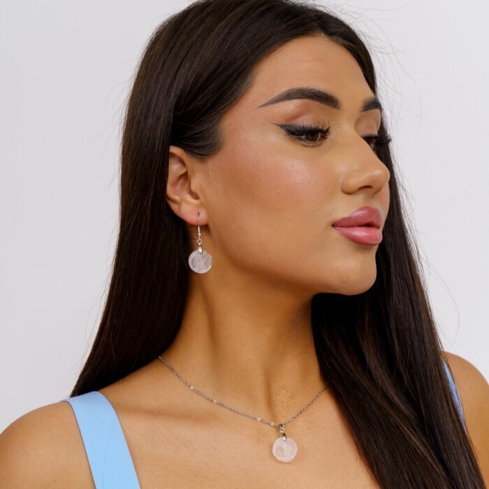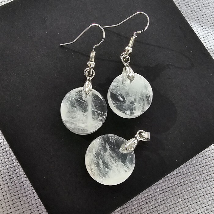 Набор бижутерии серьги и кулон с цепочкой с натуральным камнем Горный хрусталь, 10120, Уценка, арт.08.2444