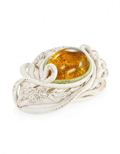 Нарядная брошь из натурального коньячного янтаря «Крылышко»