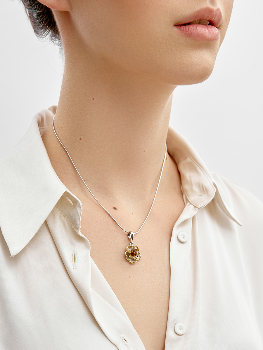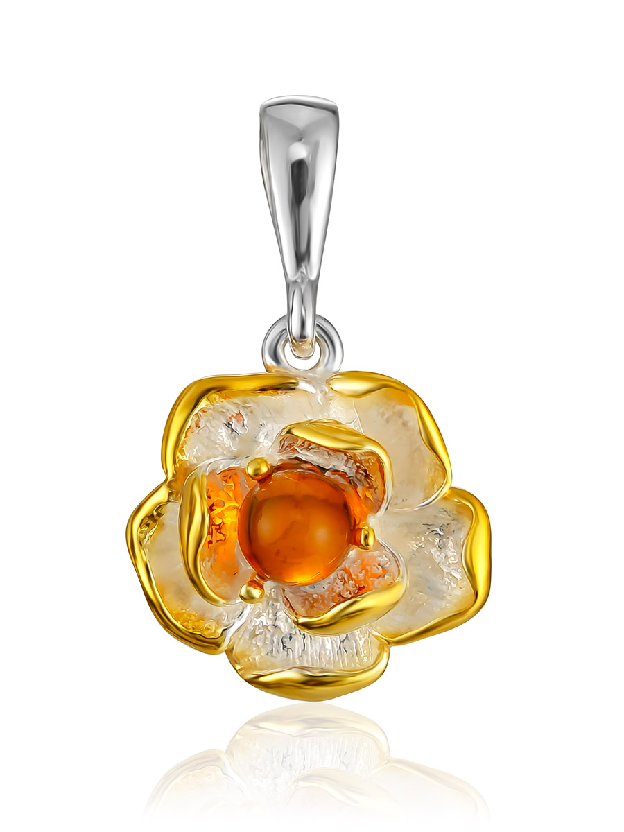 Нарядная подвеска «Лютик» с коньячным янтарём