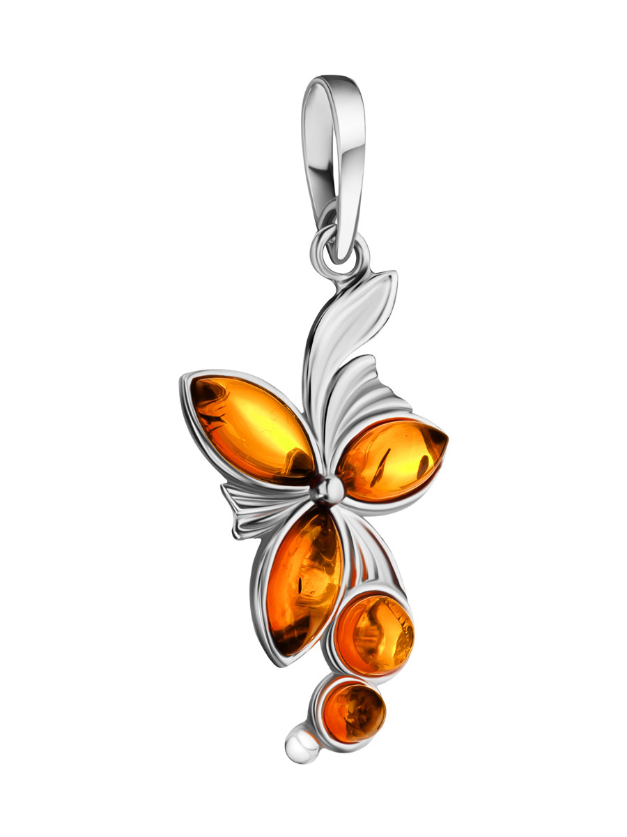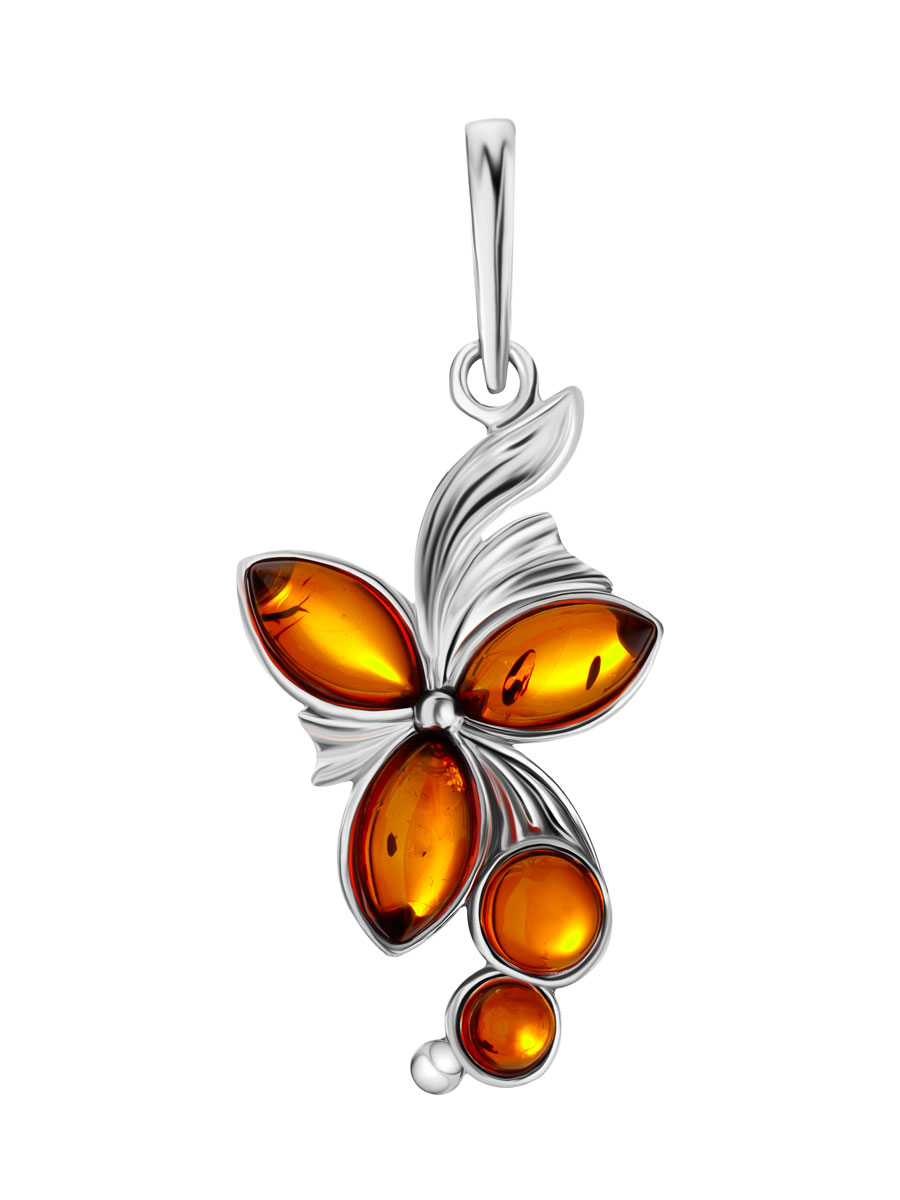 Нарядная подвеска, украшенная вставками из коньячного янтаря «Орхидея»