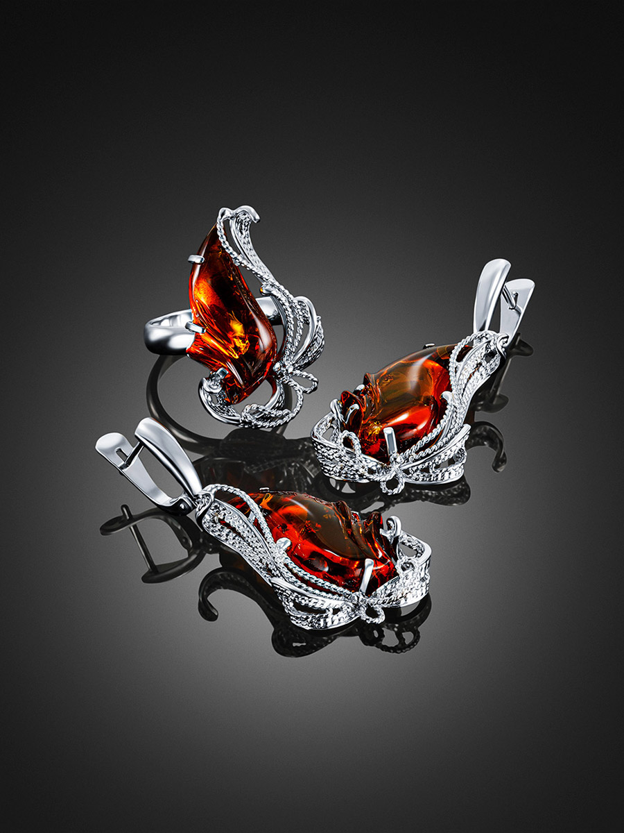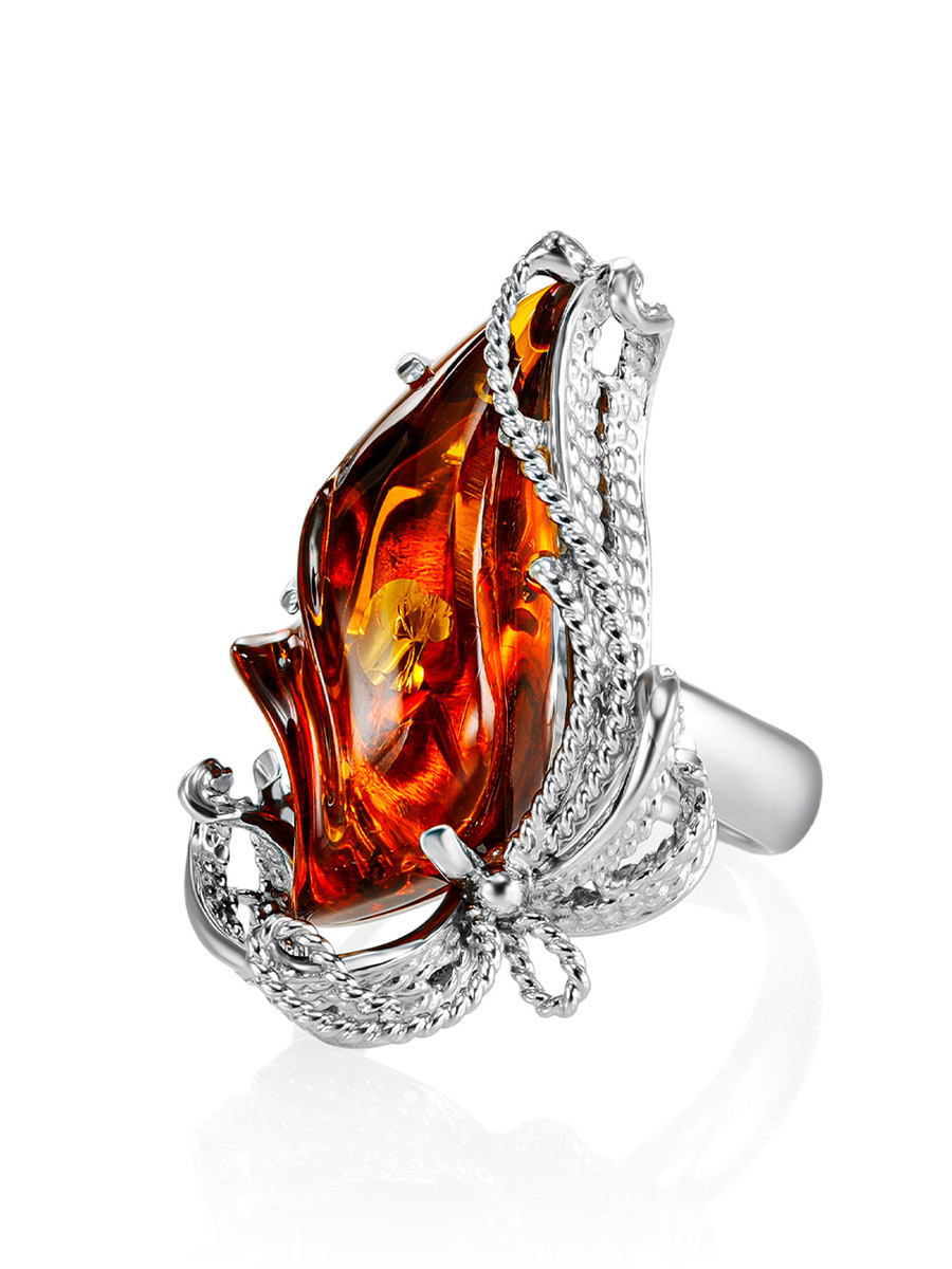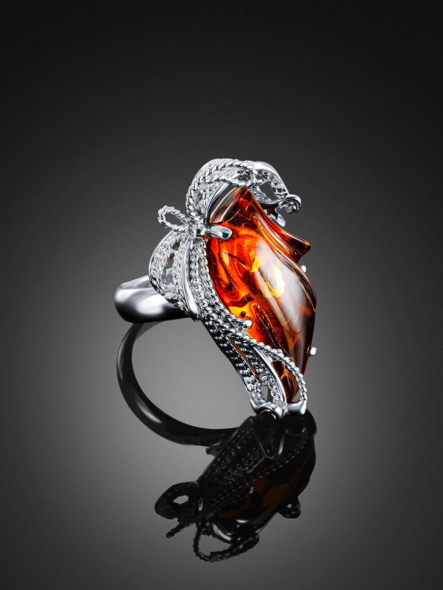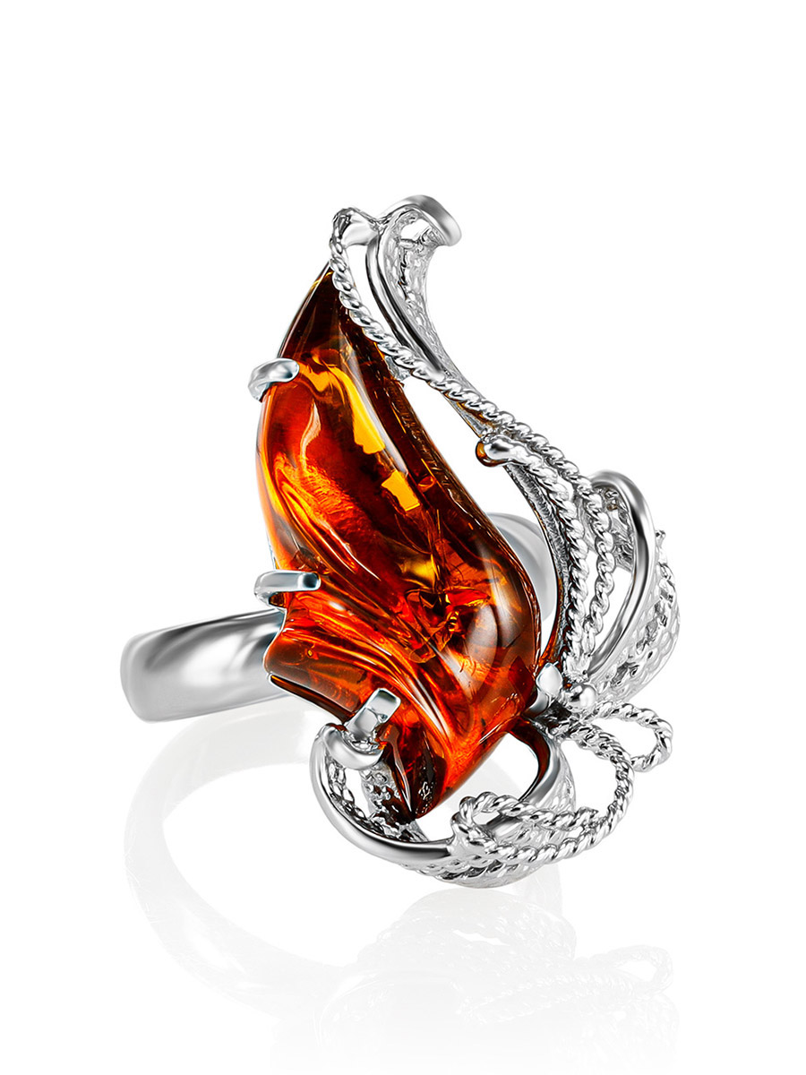 Нарядное кольцо из натурального сияющего янтаря «Филигрань»