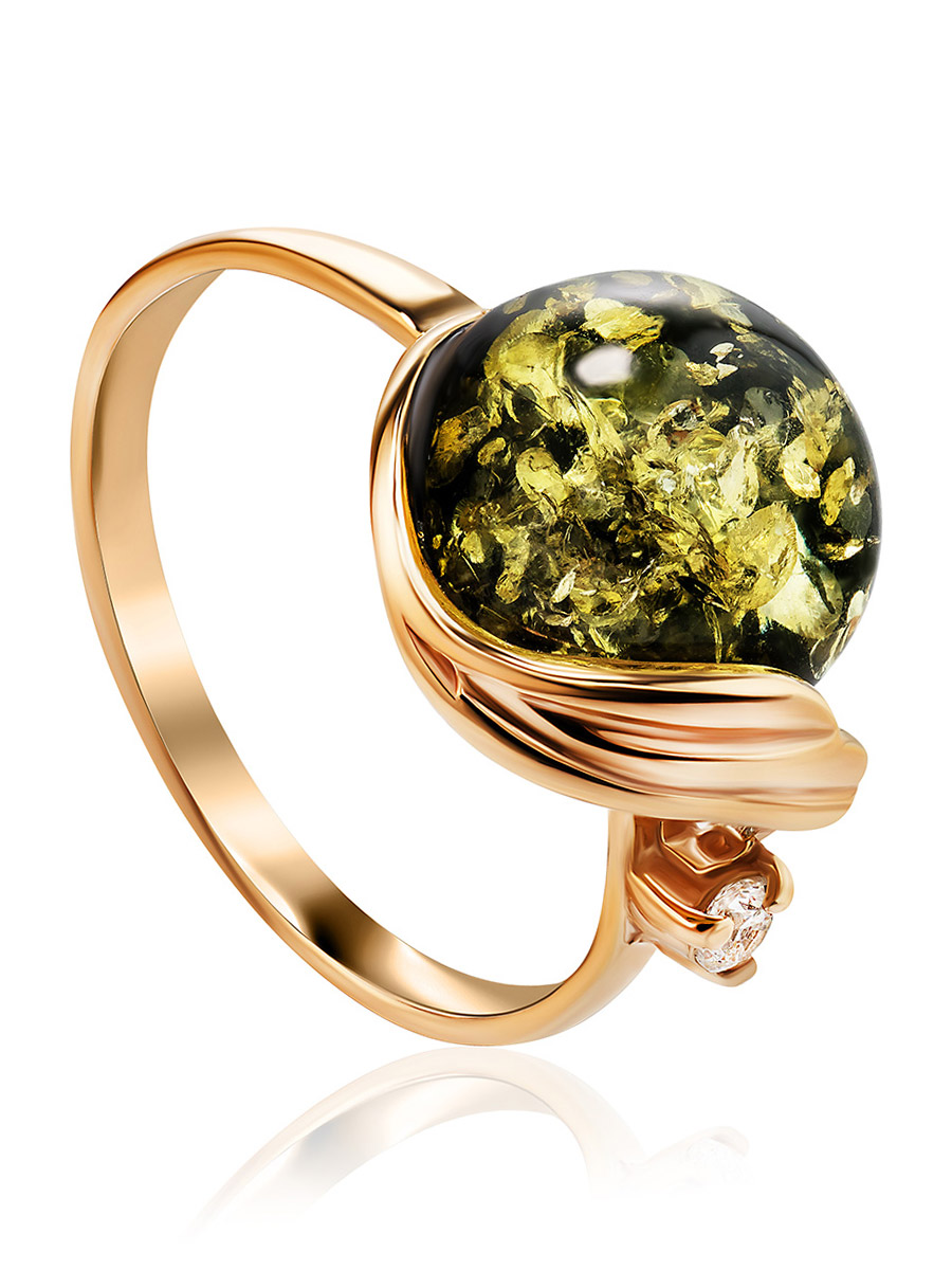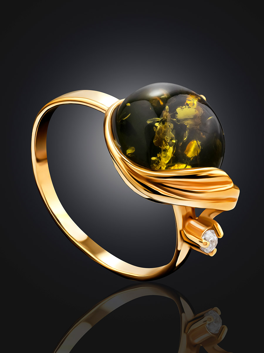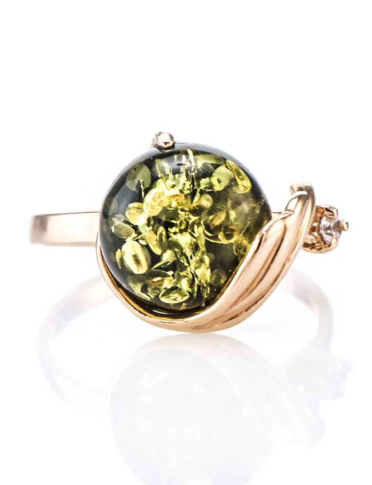 Нарядное кольцо «Лебедь» с зелёным балтийским янтарём
