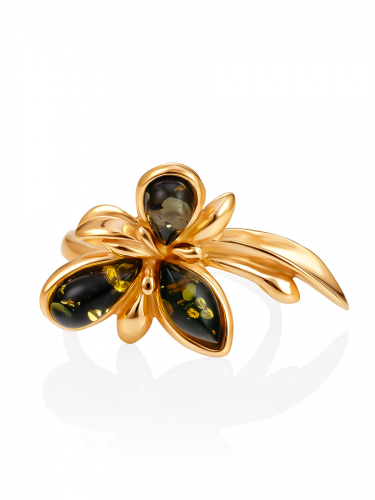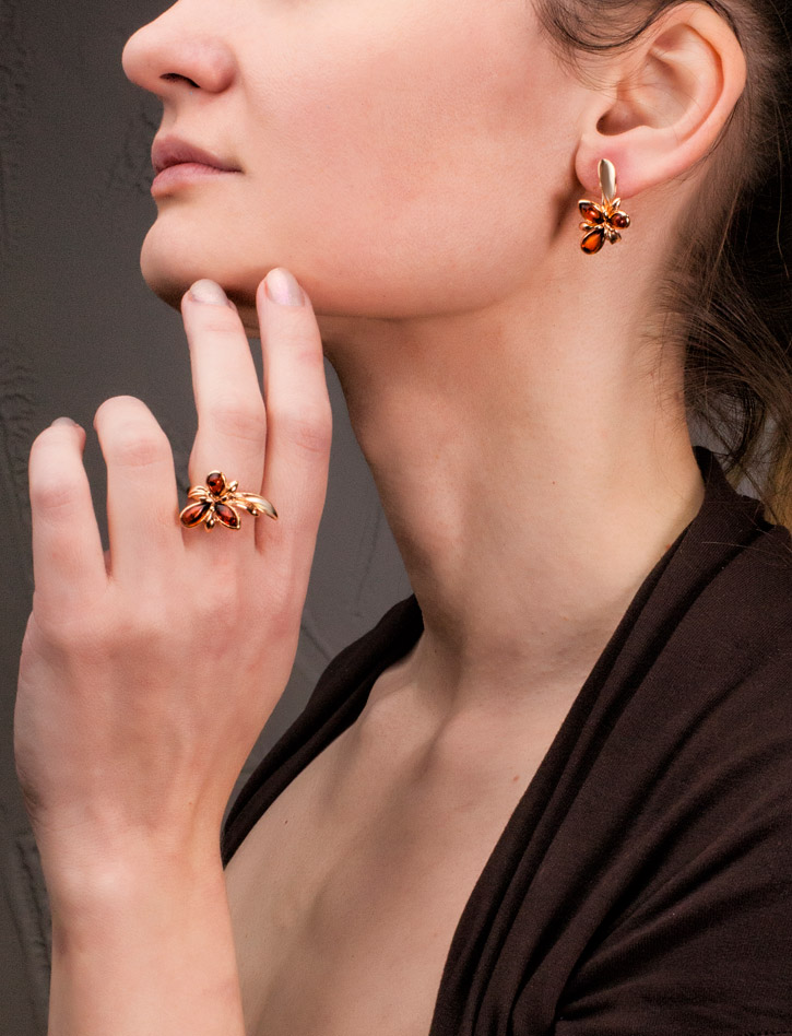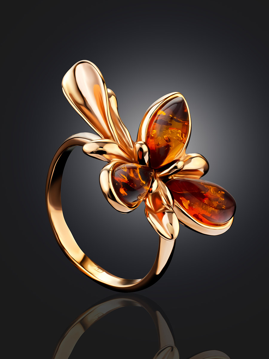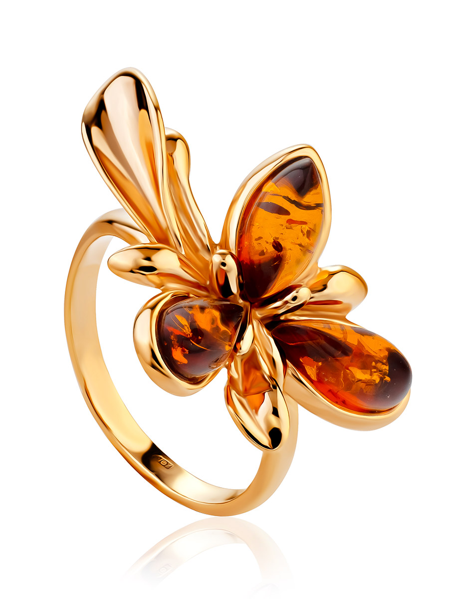 Нарядное кольцо с коньячным янтарём «Кипарис»