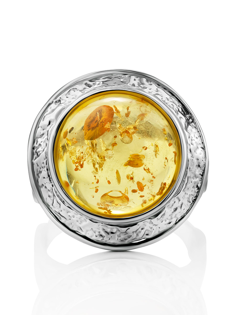 Нарядное кольцо с круглой вставкой золотисто-лимонного янтаря «Ампир»