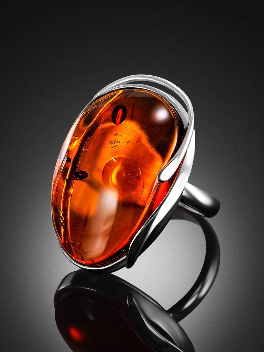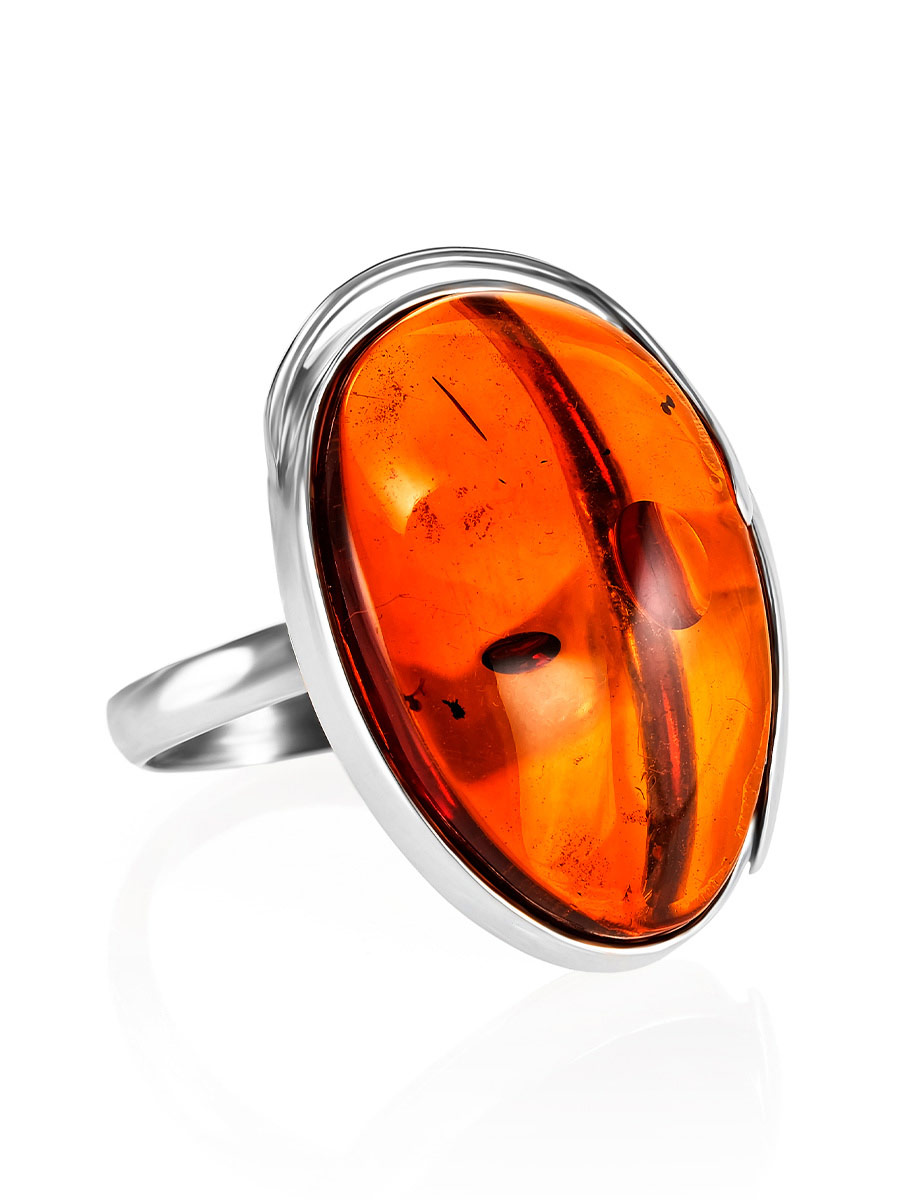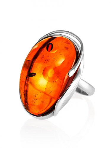 Нарядное кольцо с натуральным цельным янтарём «Лагуна»