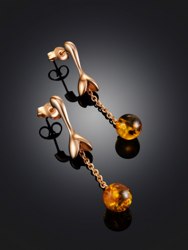 Нарядные объёмные серьги «Роза» с натуральным коньячным янтарём