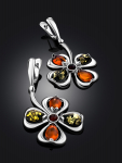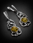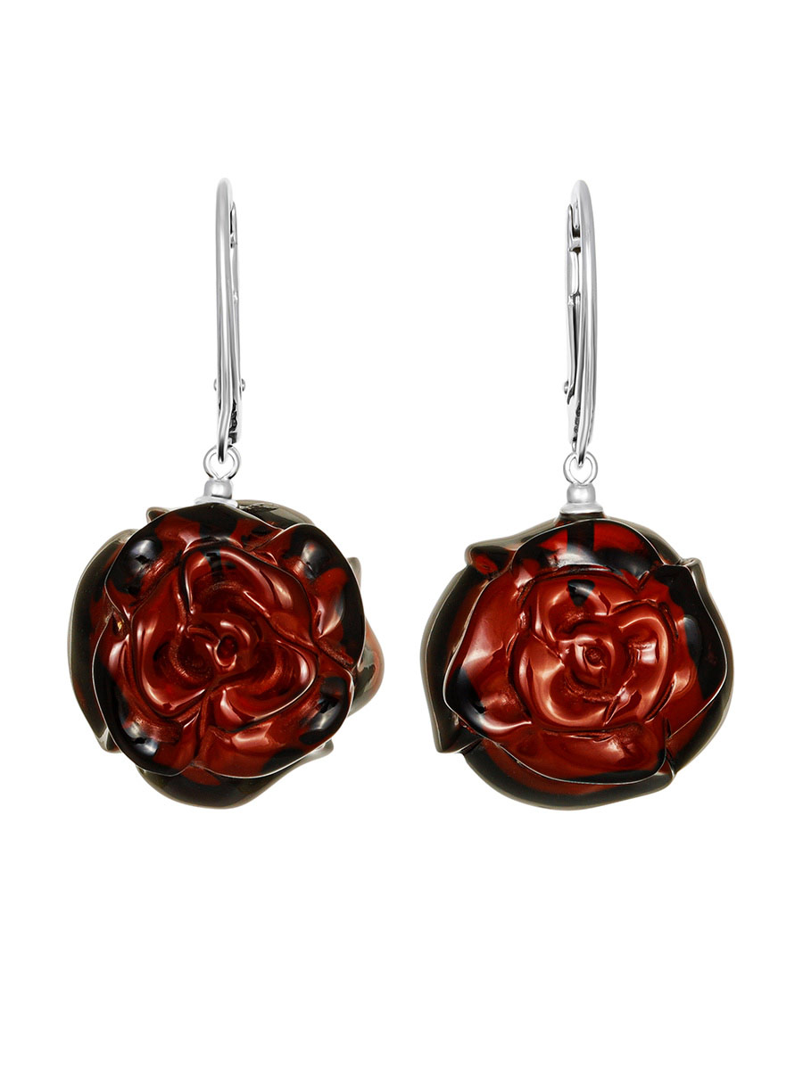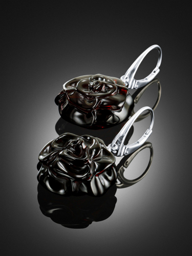 Нарядные серьги из натурального балтийского янтаря «Вишнёвая роза»