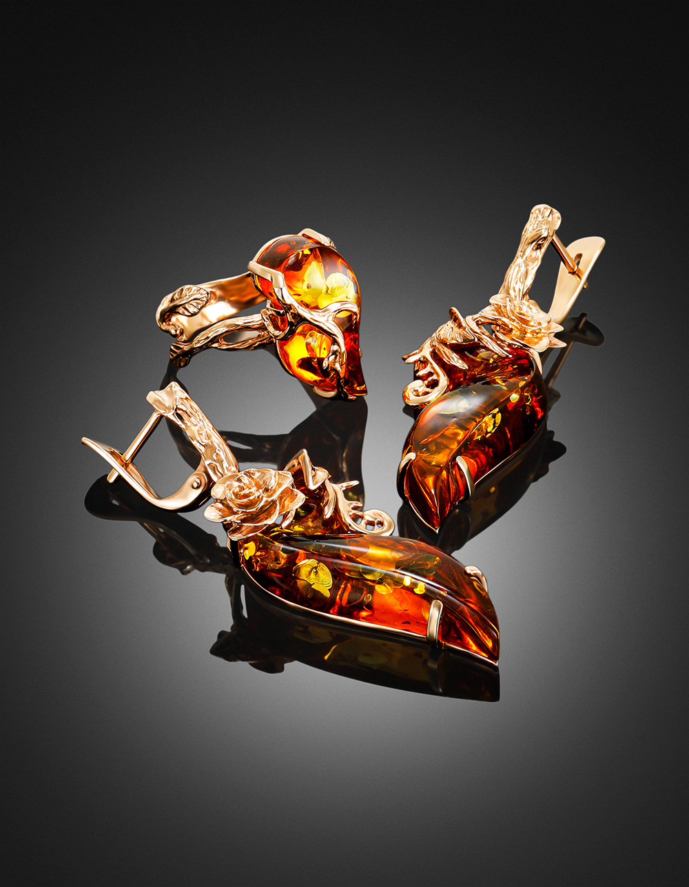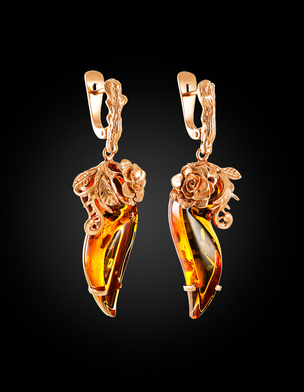 Нарядные серьги «Колибри» из коньячного янтаря