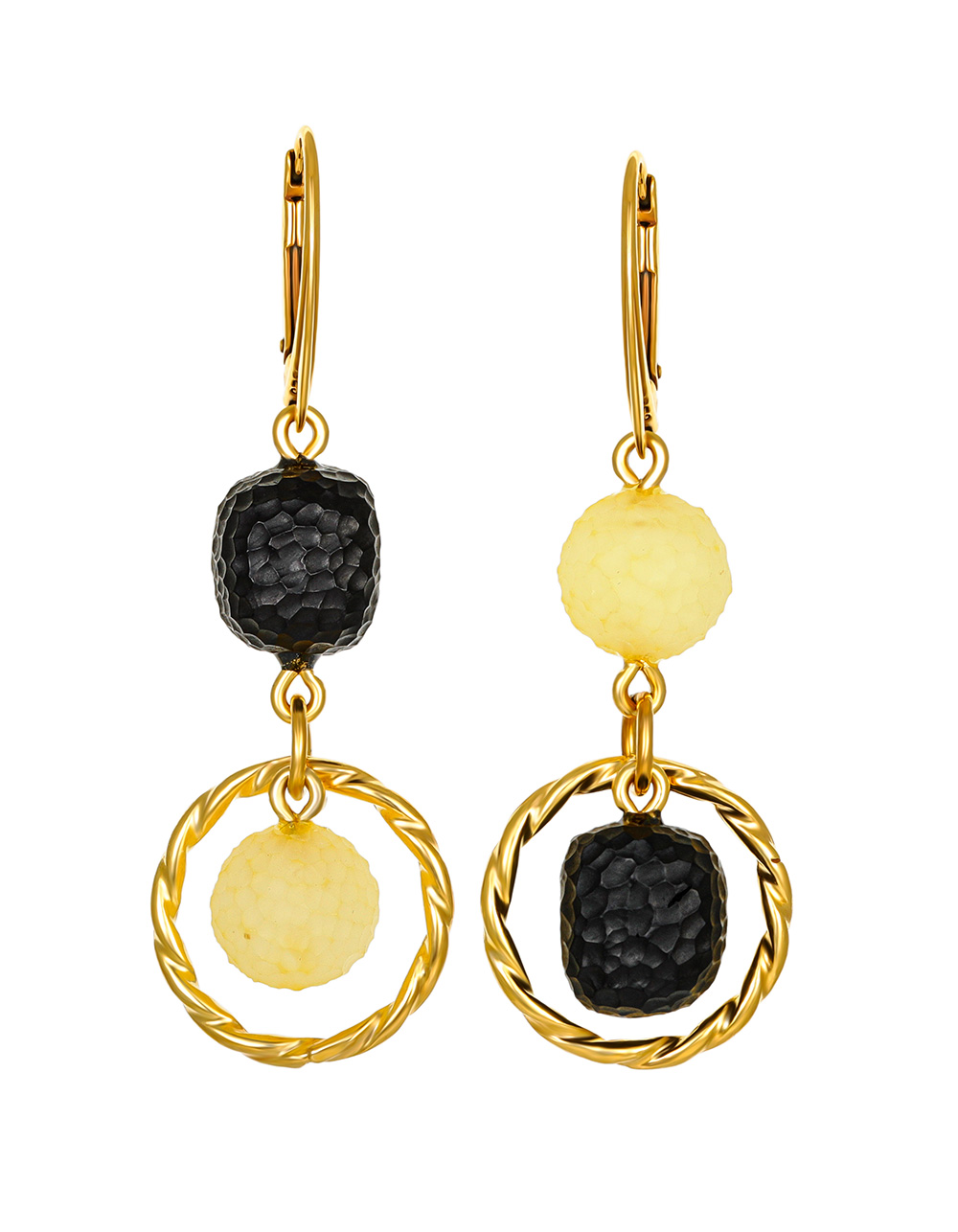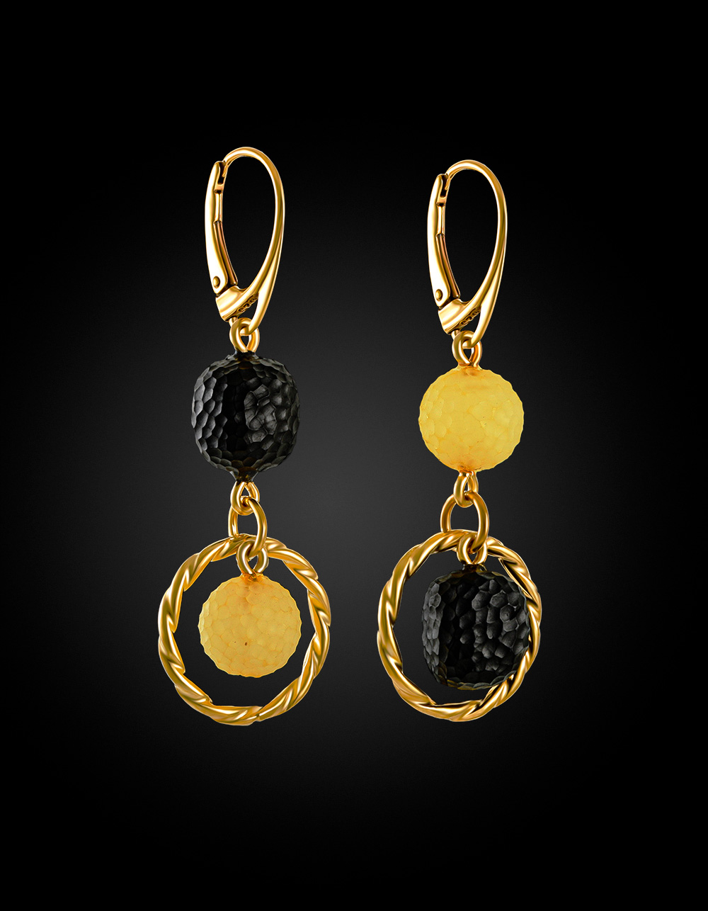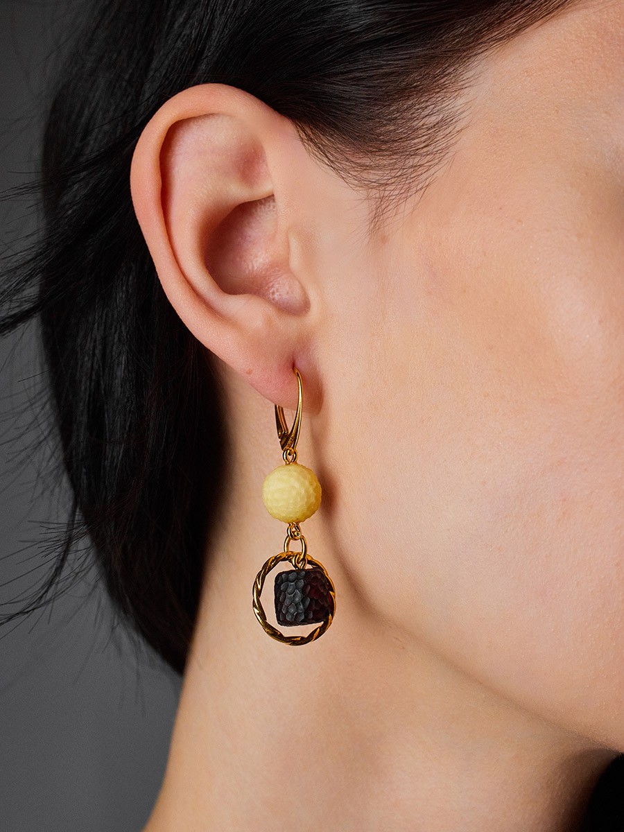 Нарядные серьги «Марс» с натуральным белым и чёрным янтарём