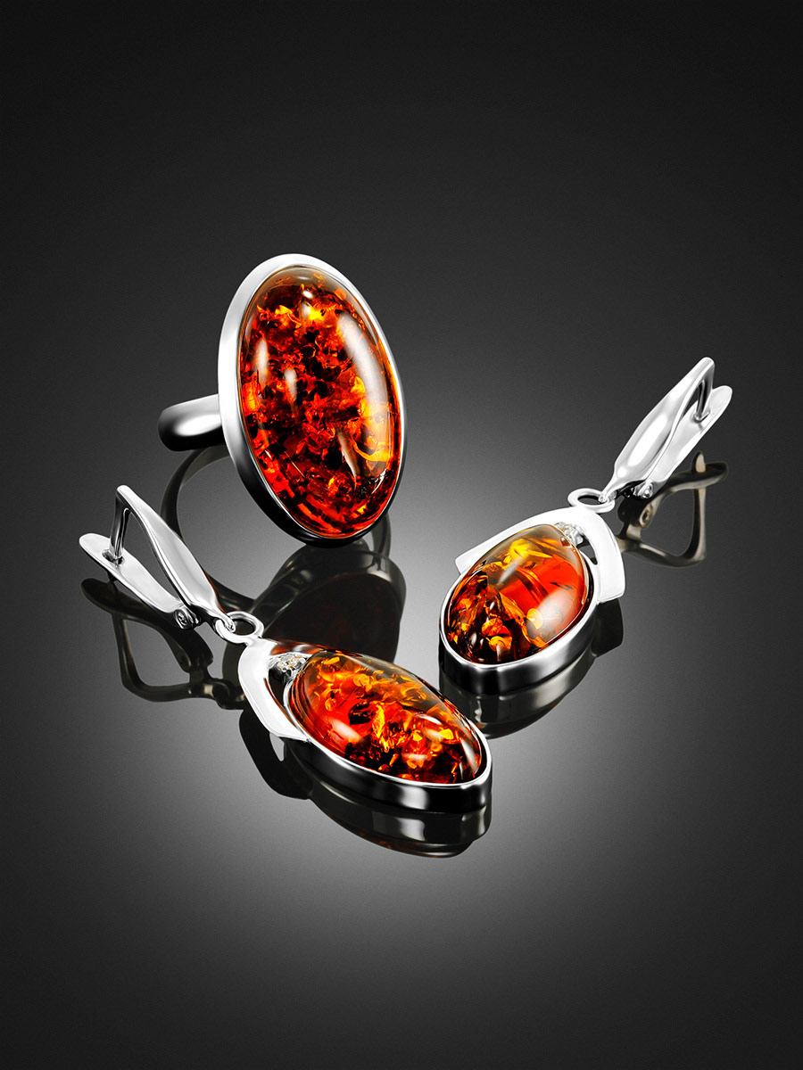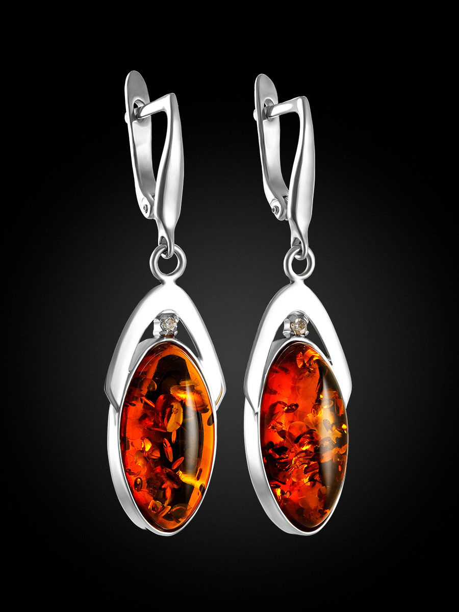 Нарядные серьги «Медиана» с натуральным янтарём коньячного цвета