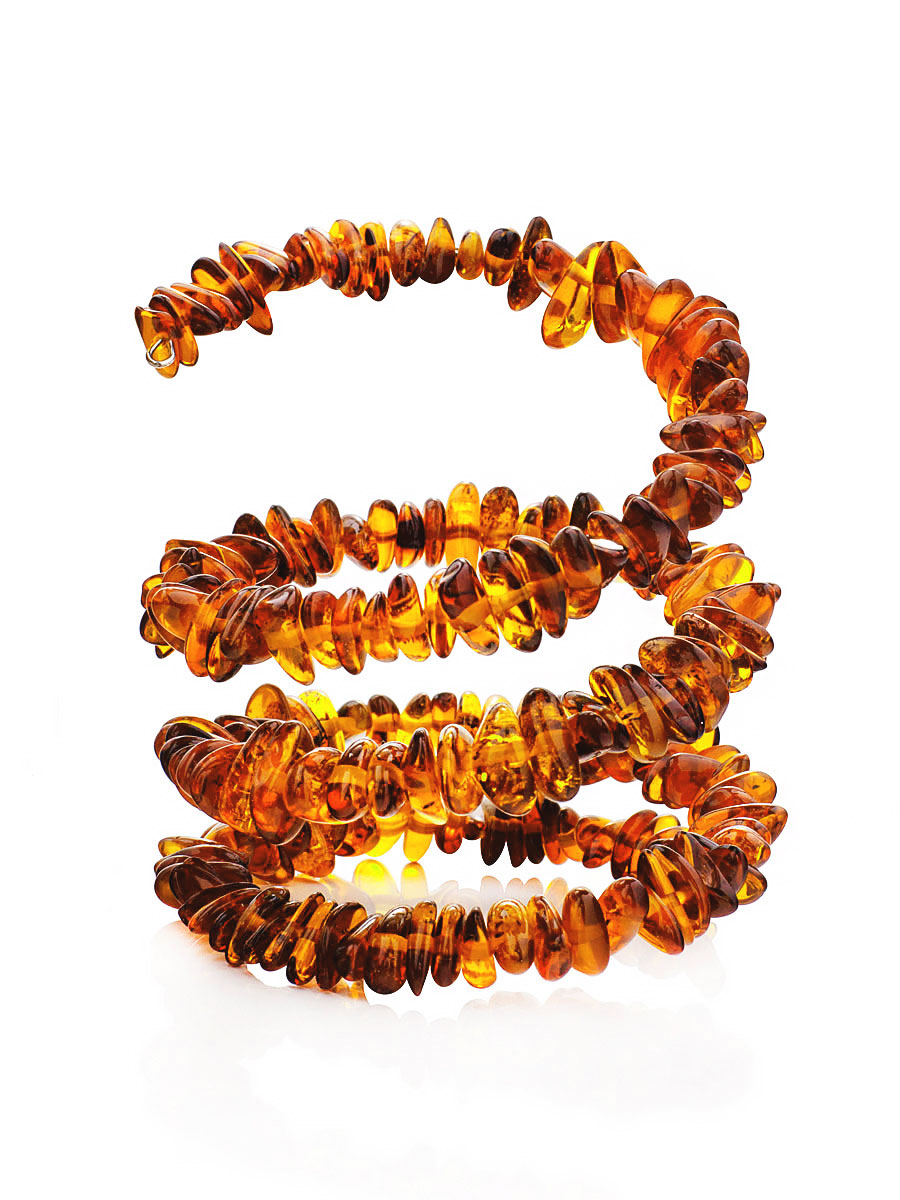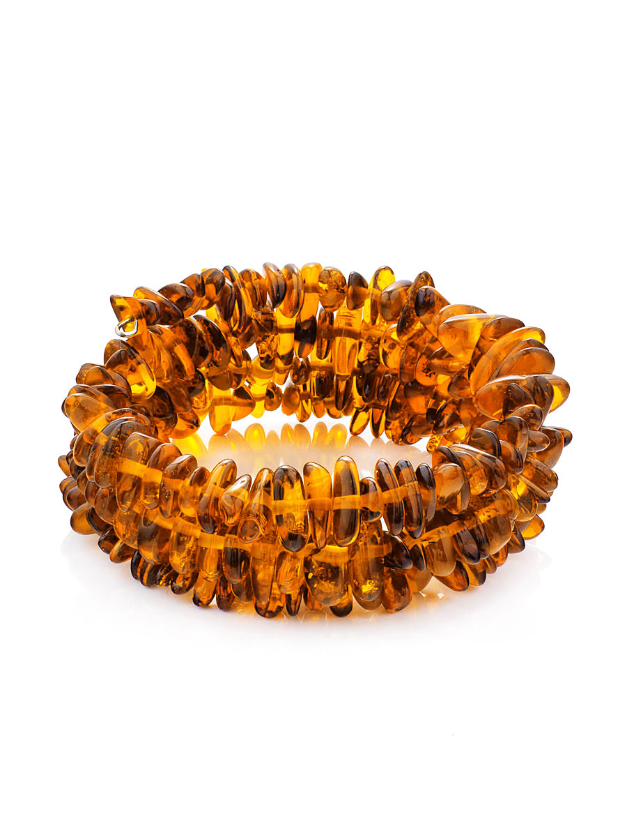 Нарядный браслет на струне из натурального коньячного янтаря для детей