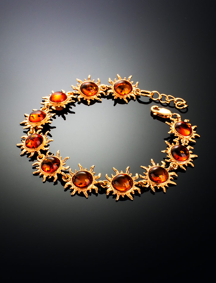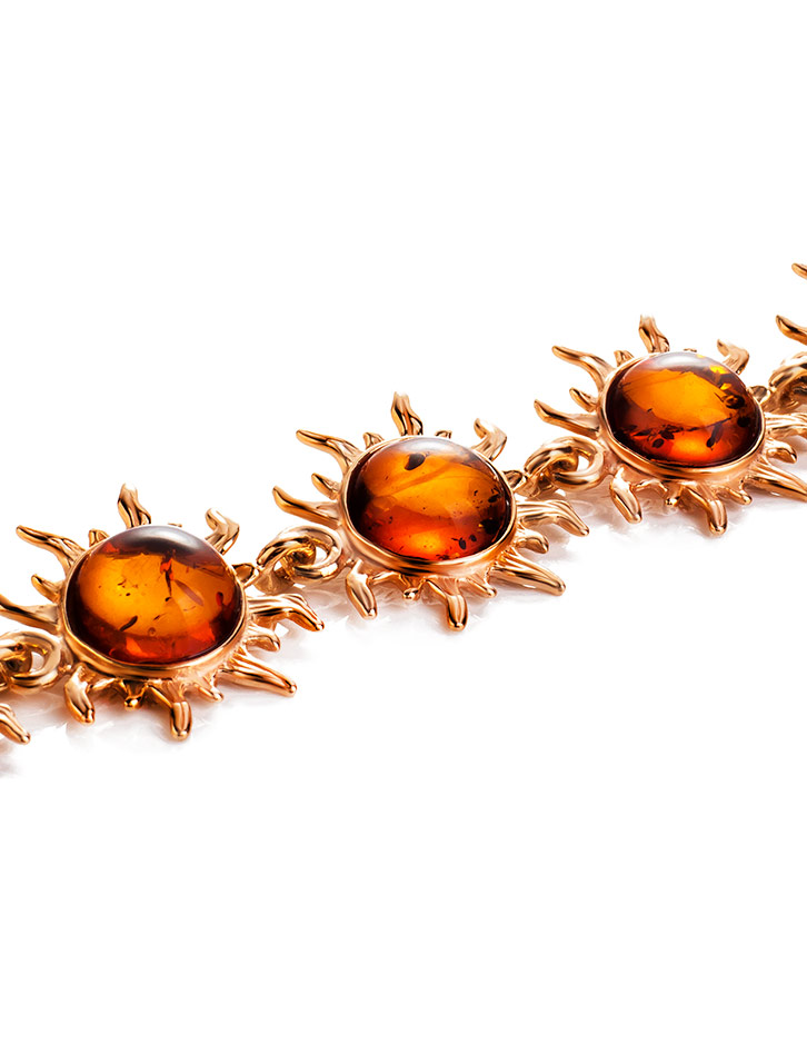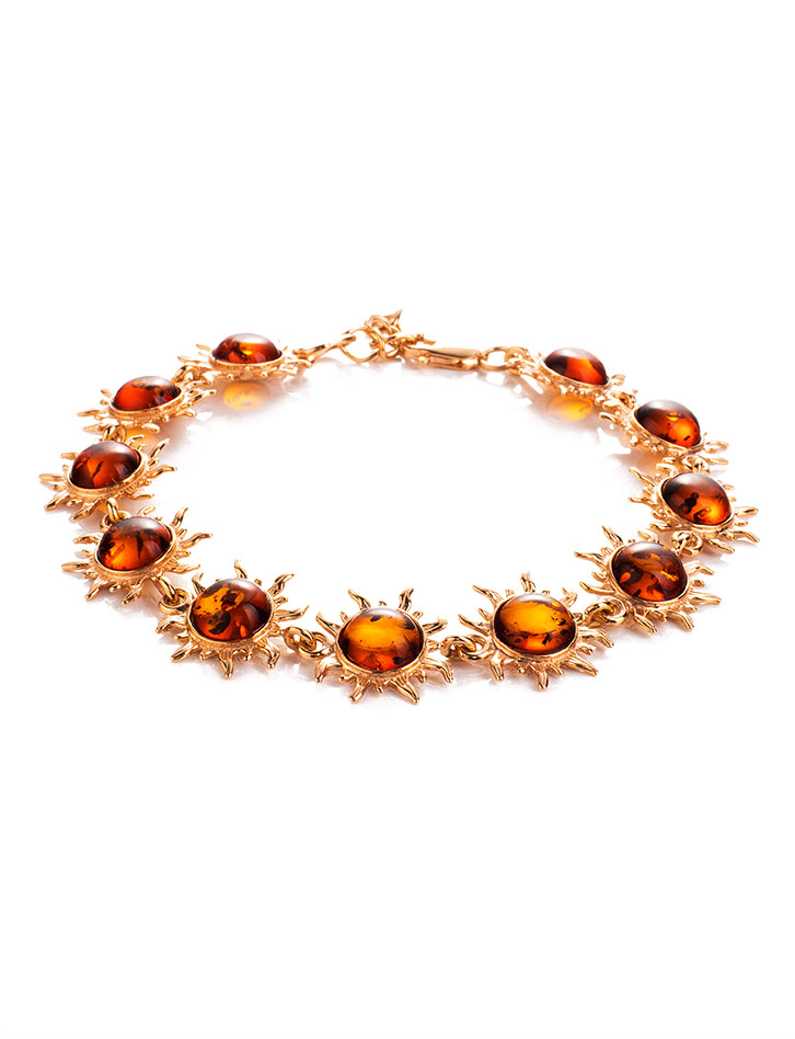 Нарядный позолоченный браслет с натуральным цельным янтарём «Гелиос»