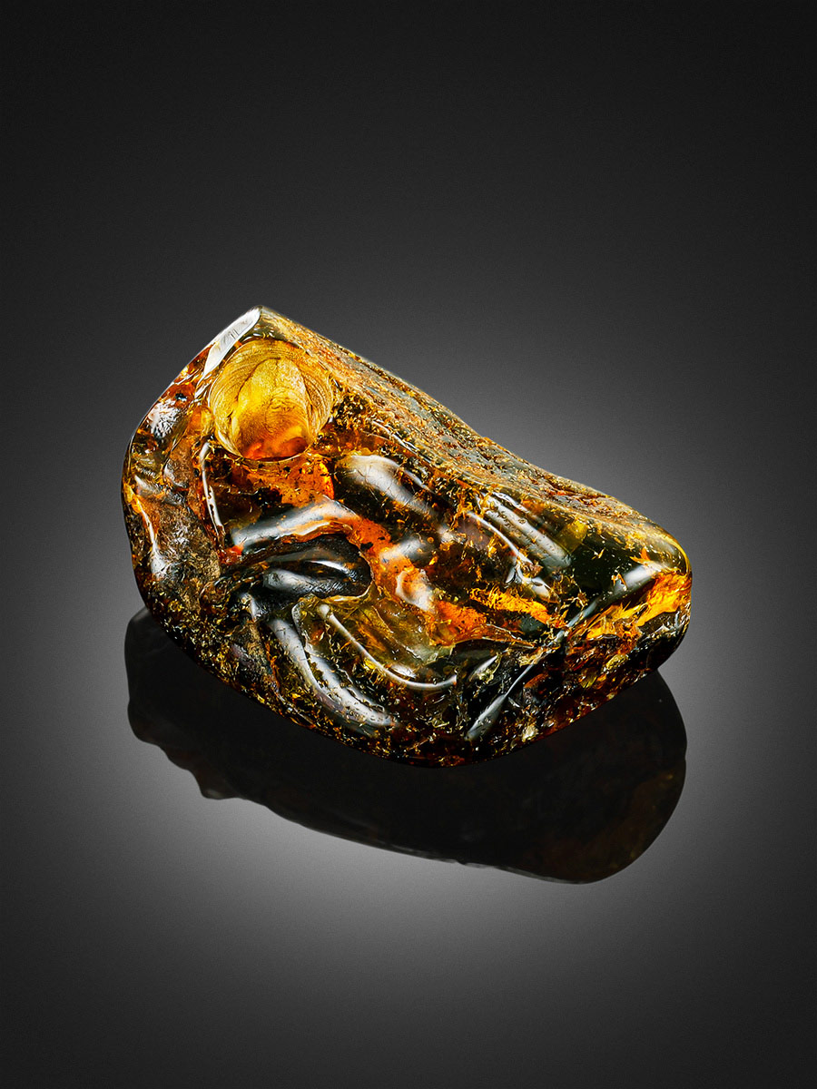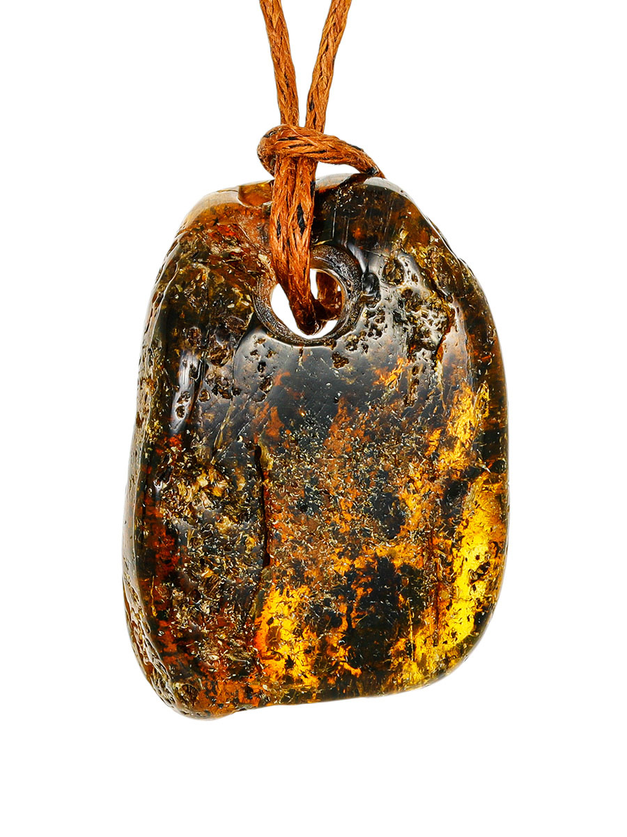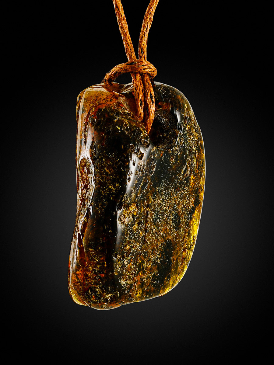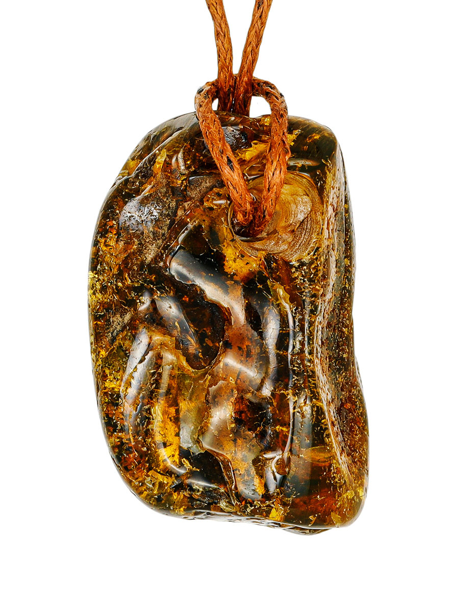 Небольшая подвеска из цельного натурального янтаря с тёмными включениями
