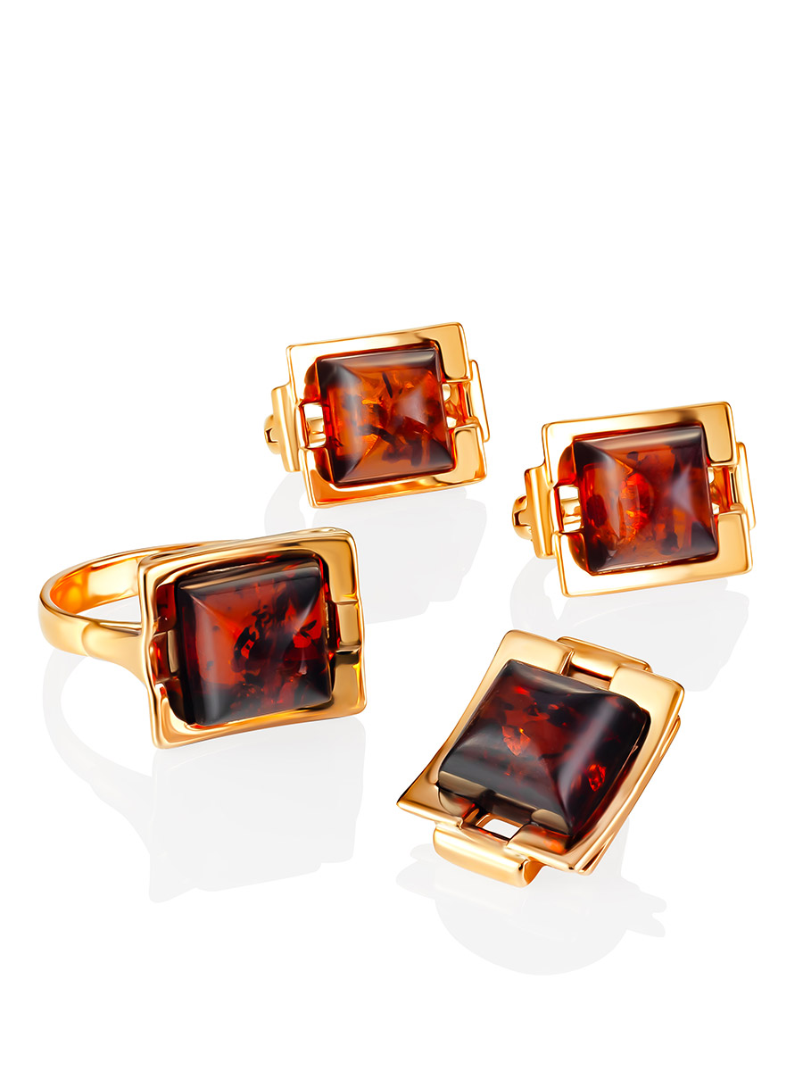 Небольшие аккуратные серьги «Фиджи» с вишнёвым янтарём