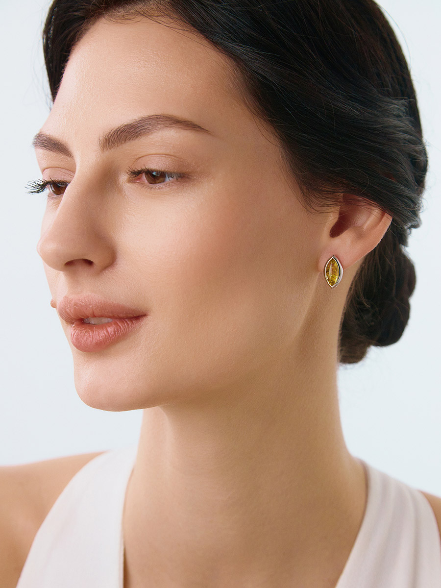 Небольшие элегантные серьги из лимонного янтаря «Амарант»