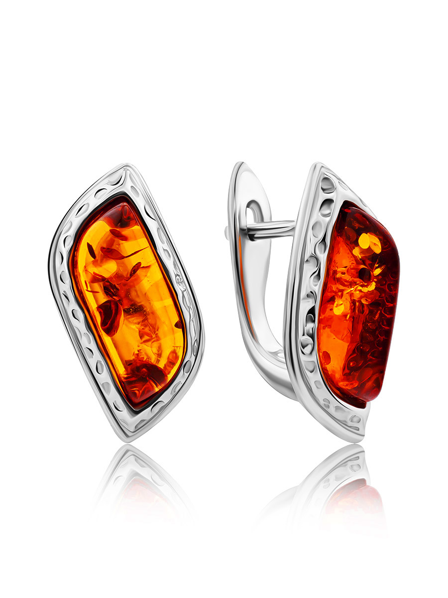 Небольшие изящные серьги из натурального коньячного янтаря «Тильда ажур»